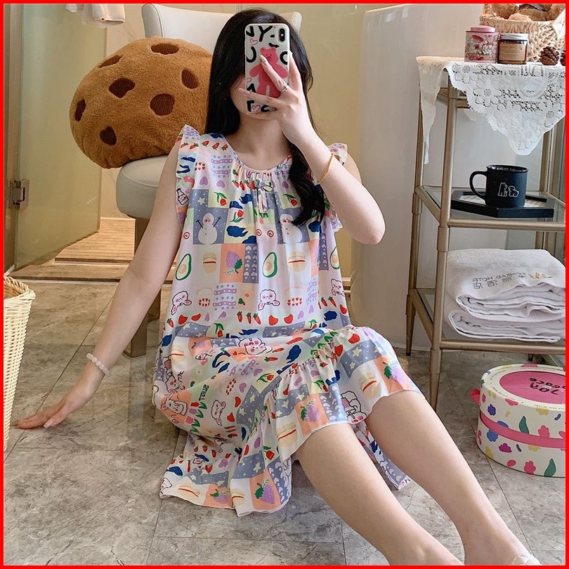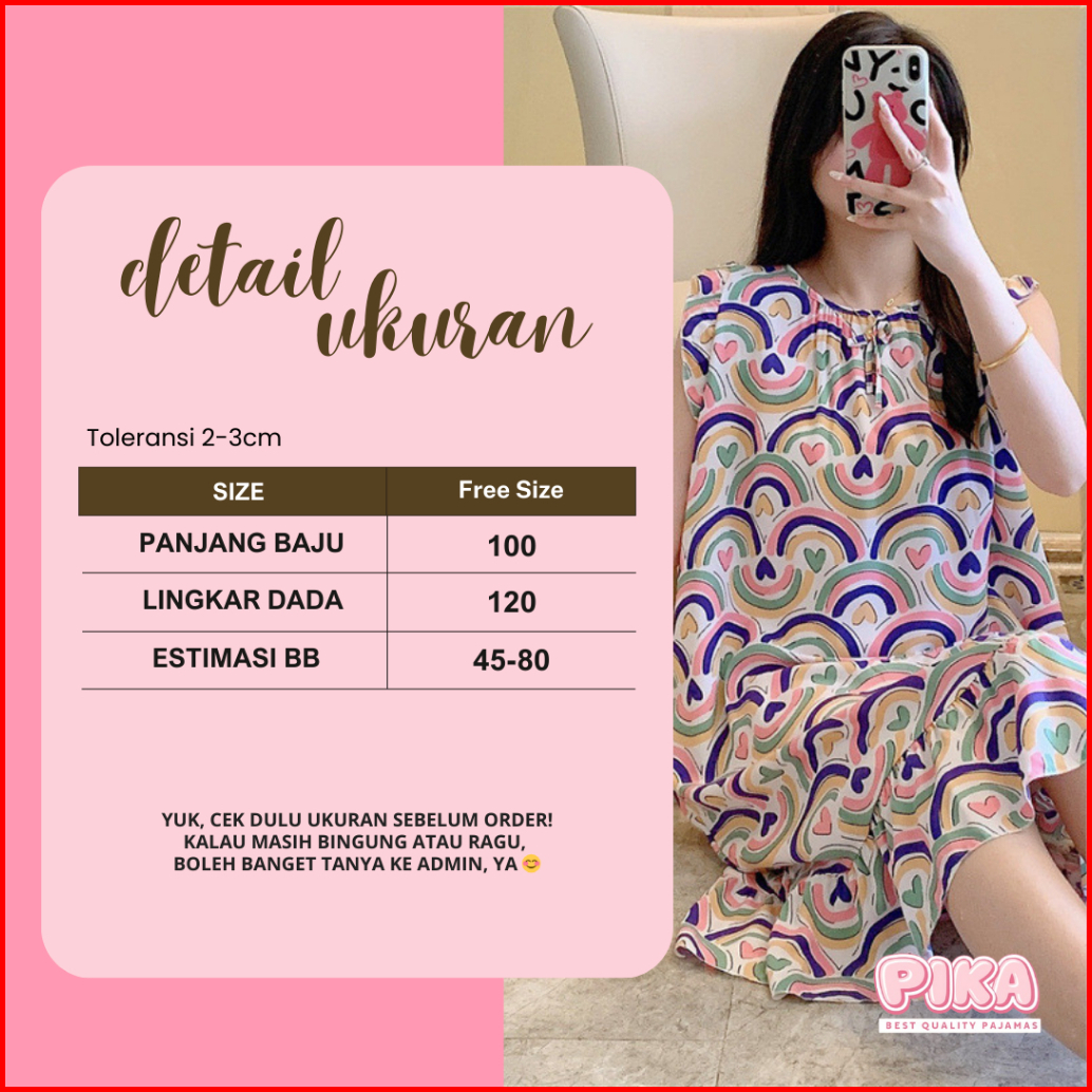 Pika Daster Rayon Wanita Baju Tidur Perempuan Lembut Adem Model Renda Rumbai Premium Free Size Fit To 2xl Dt002