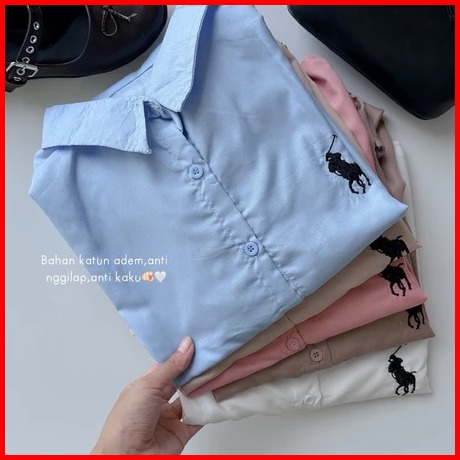 Kemeja Atasan Wanita Polos Bordir Lengan Panjang Bahan Katun Import Outfit Kekinian