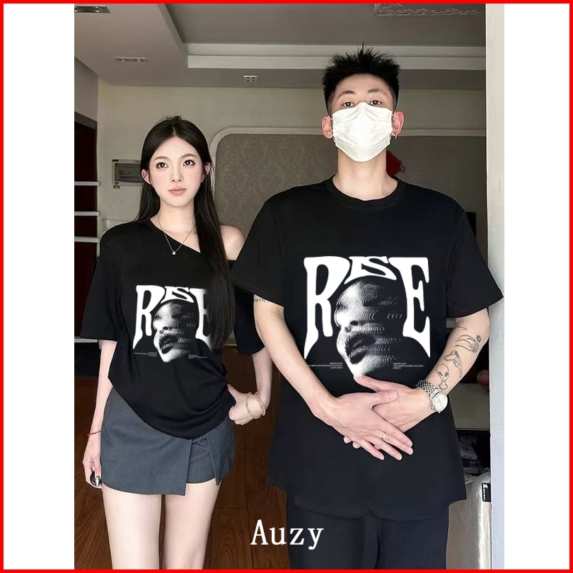 Auzy Rise Punk Pasangan Atasan Tanpa Bahu Kaos Pria Wanita Atasan Lengan Pendek T-shirt Skena Baju Oversize T Shirt