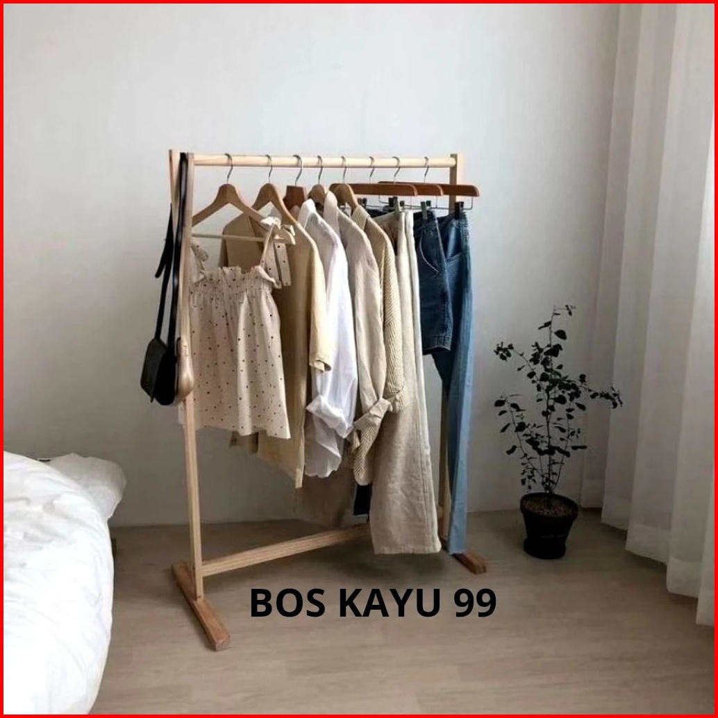 Stand Gantungan Baju Stand Hanger Kayu Estetik 115 75 Cm