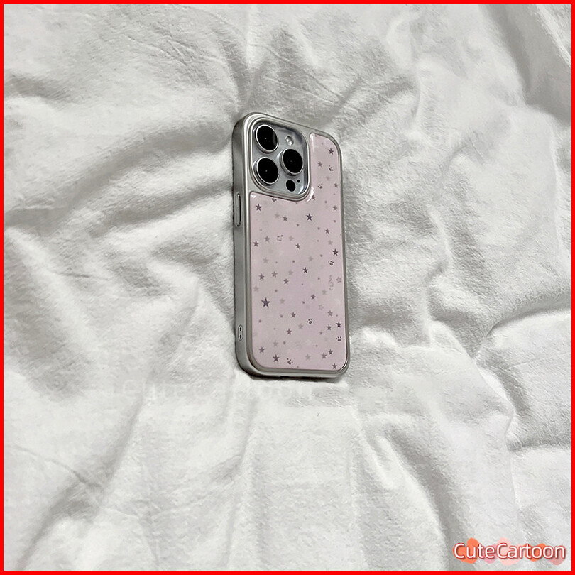 Estetik Stars Bling Bling Hologram Case Hp Iphone 16 13 15 11 12 11 14 Pro Max Silver Cewek Coquette Aesthetic Premium L