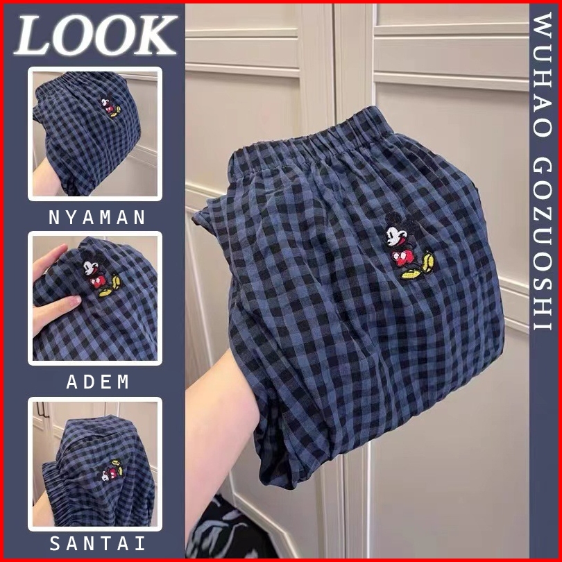 Celana Panjang Wanita Cln-4333 Celana Rumah Santai Kotak Cute Lucu Student Katun Adem Melar Mimon Home