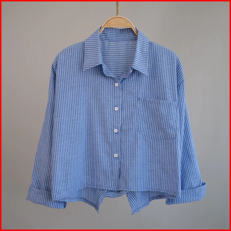 Kemeja Salur Wanita Lengan Panjang Crop Top Jumbo Oversize