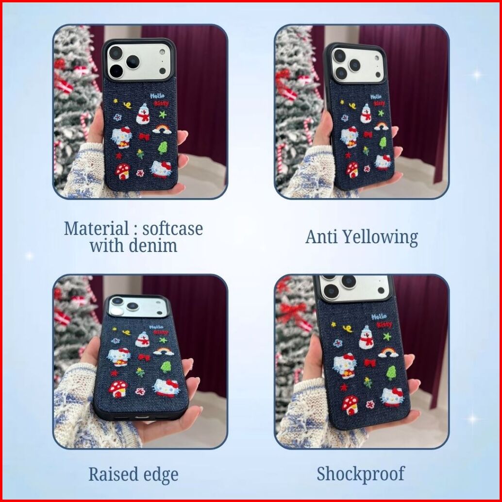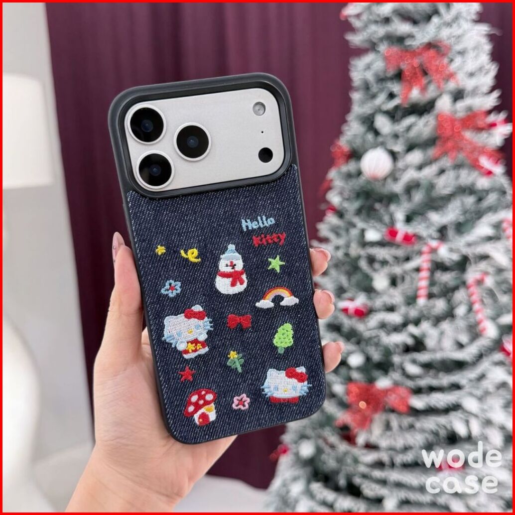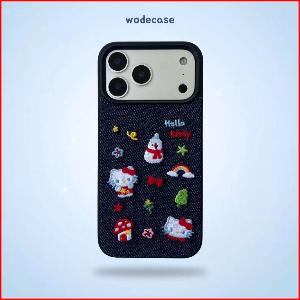 Wodecase Kitty Winter Denim Case Softcase Anti Yellowing Dan Phone Strap Untuk Iphone 13 14 15 16 17 Pro Max