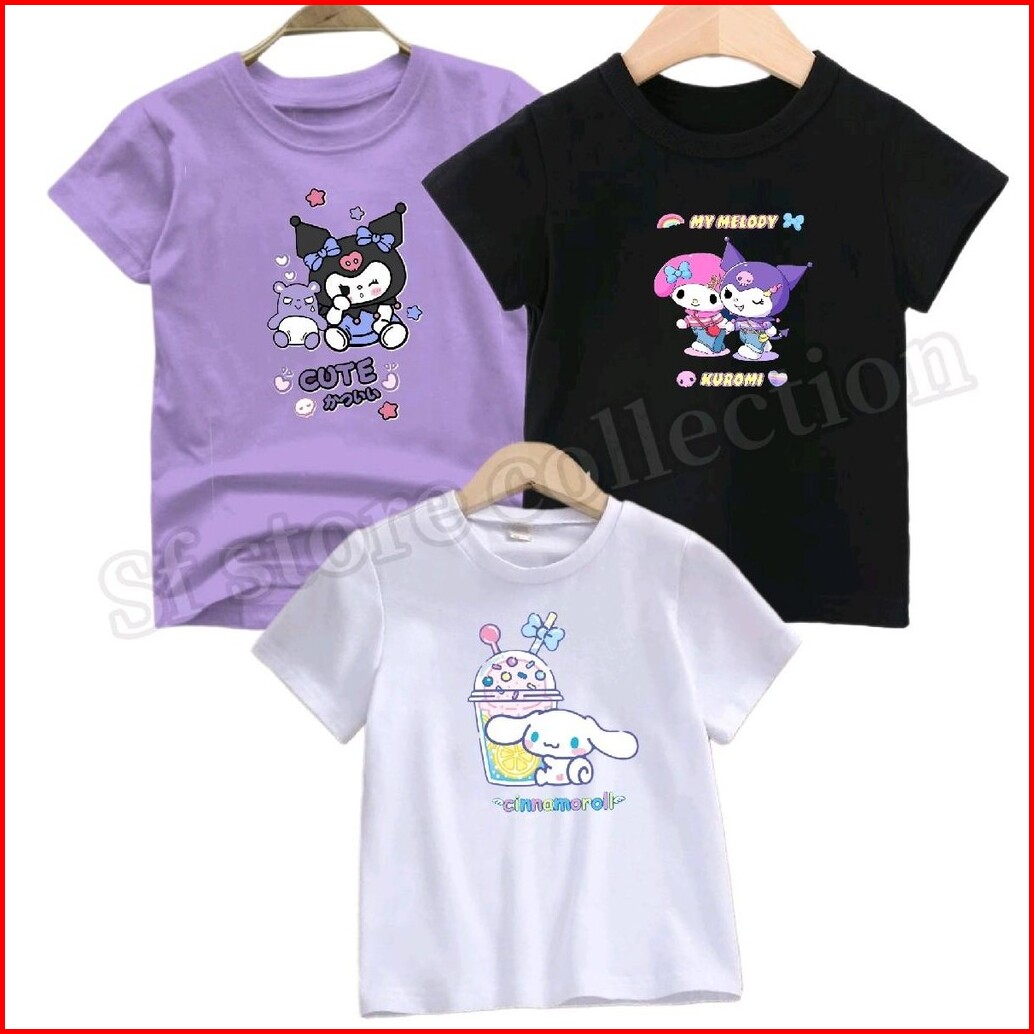 Paket Hemat 3 Pcs Kaos Anak Perempuan Motif Kuromi Cinnamoro