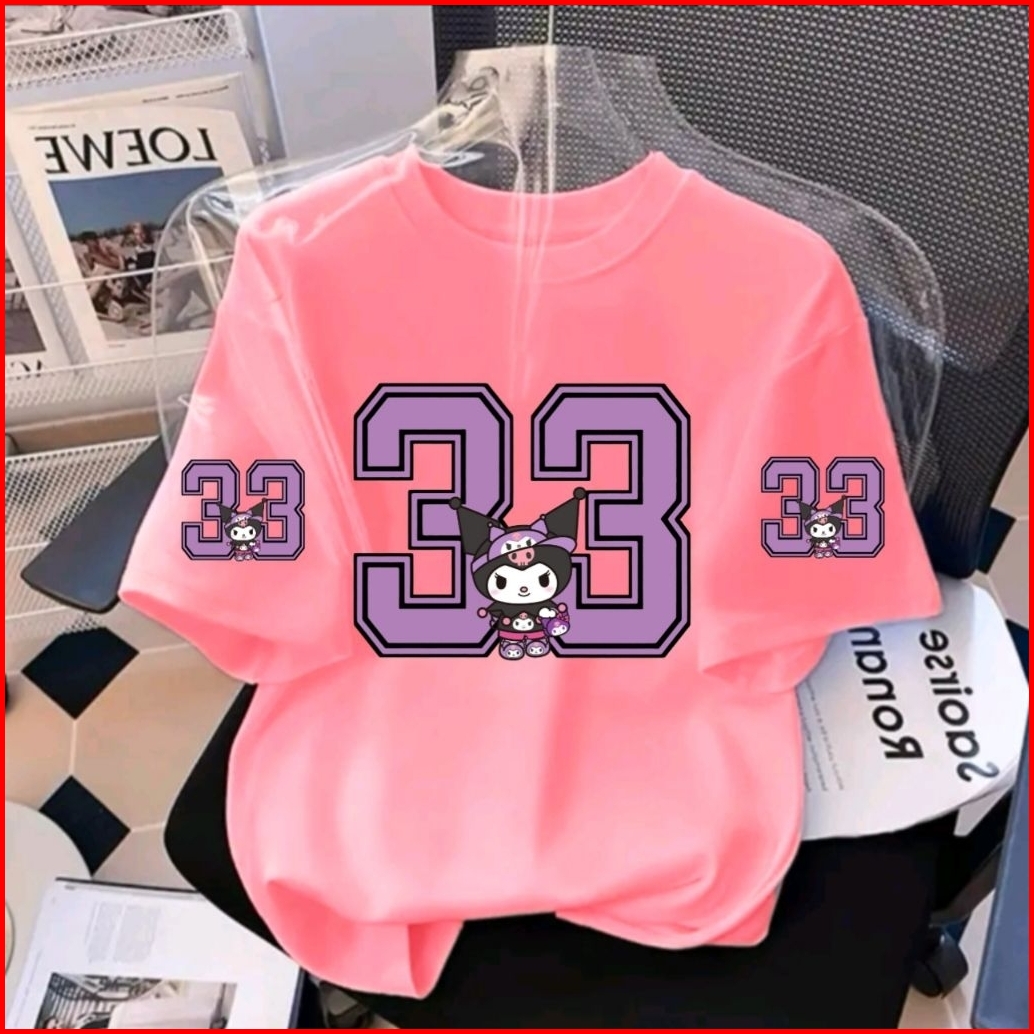 Kaos Oversize Anak Perempuan Angka 33 Kuromi Usia 3-14 Tahun Baju Oversize Anak Atasan Kaos Perempuan Anak Pakaian Anak