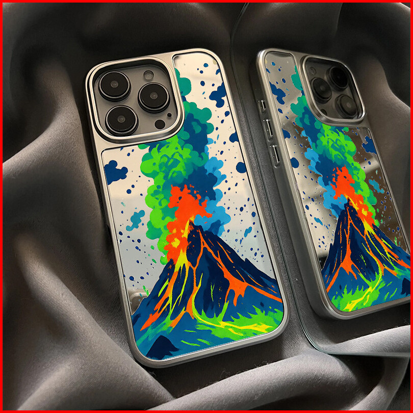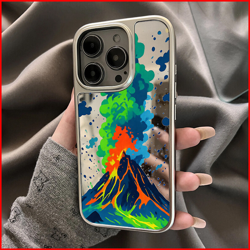 Case For Iphone Xr 11 12 13 14 15 16 Pro Max Plus Back Cover Volcano Patterns Mirror Pattern Tpu Case Silver Plating Fra
