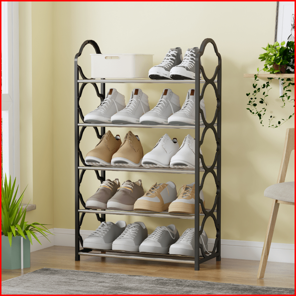 Rak Sepatu Portable 5 Susun Tempat Sepatu Sandal Serbaguna Stainless Steel Kokoh