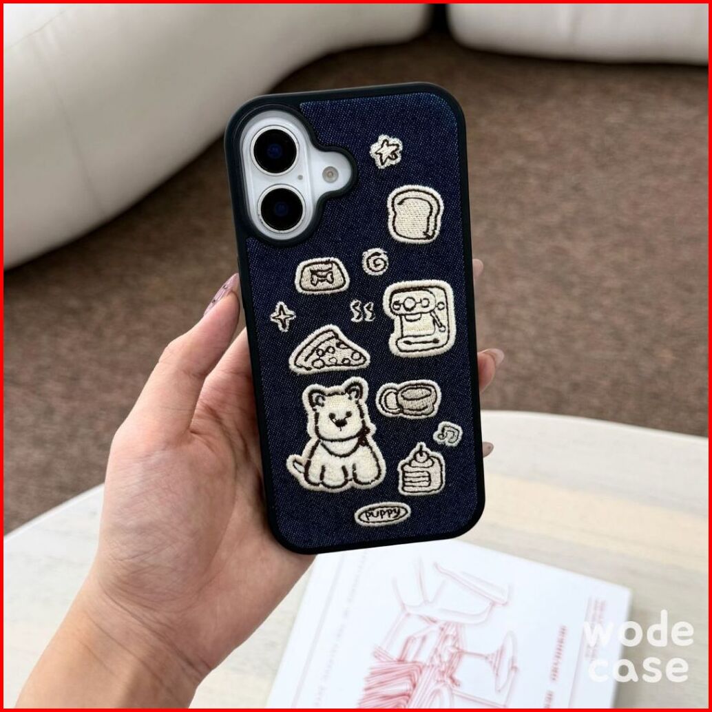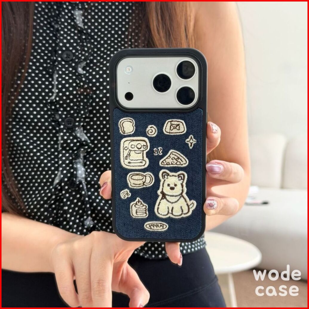 Wodecase Brew Puppy Denim Case Softcase Anti Yellowing Dan Phone Strap Untuk Iphone 13 14 15 16 17 Pro Max