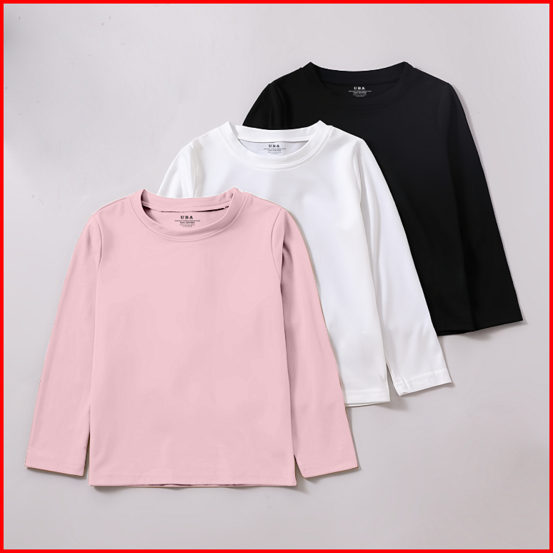 Baju Kaos Polos Anak Perempuan 6-14 Tahun Cotton Combed Atasan Kaos Panjang Anak Perempuan