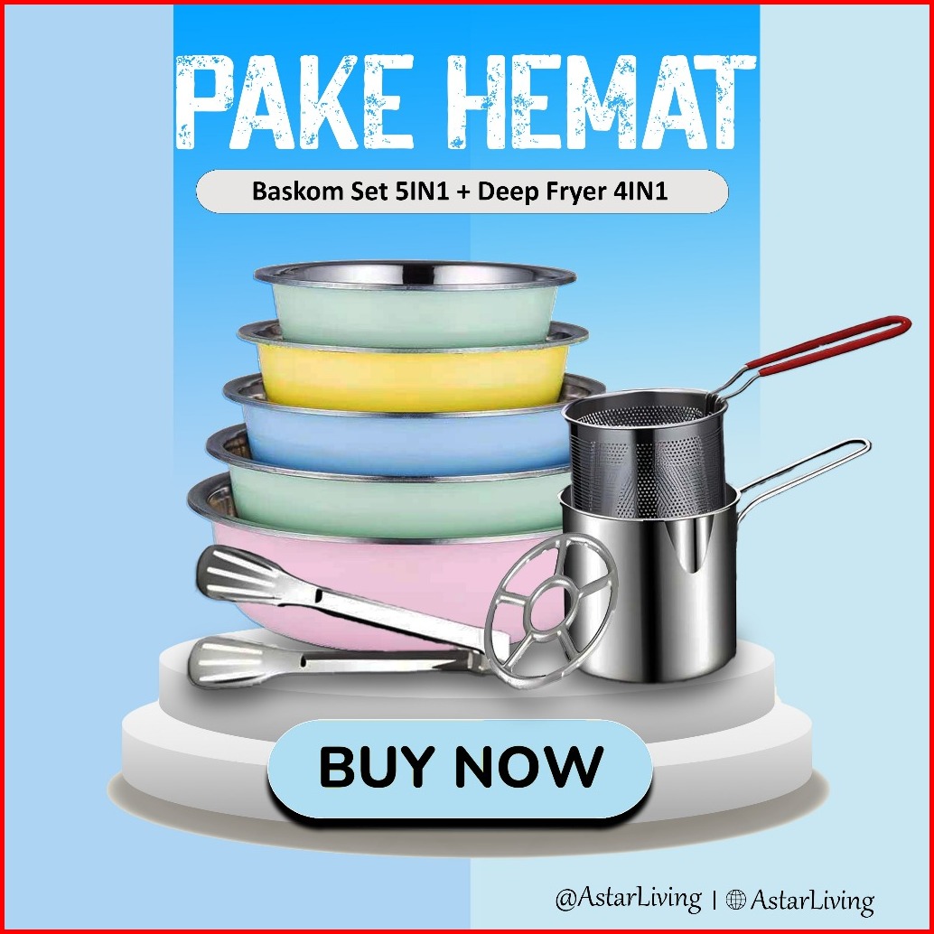 Al Paket Bundling Hemat Double Peralatan Dapur Set Baskom Warna Dan Deep Fryer 2in1 Stainles Steel