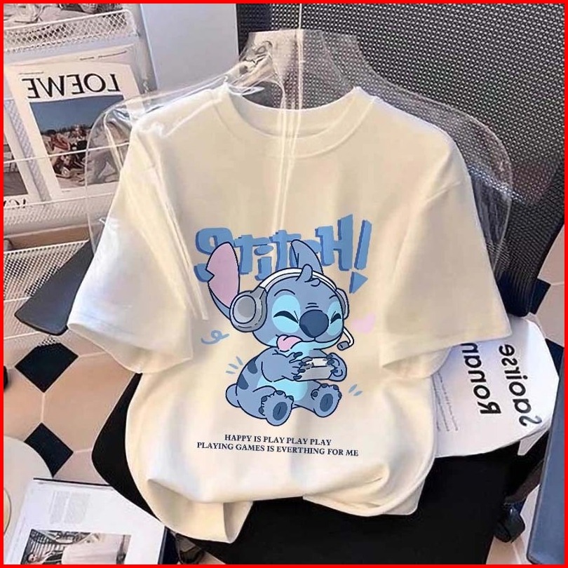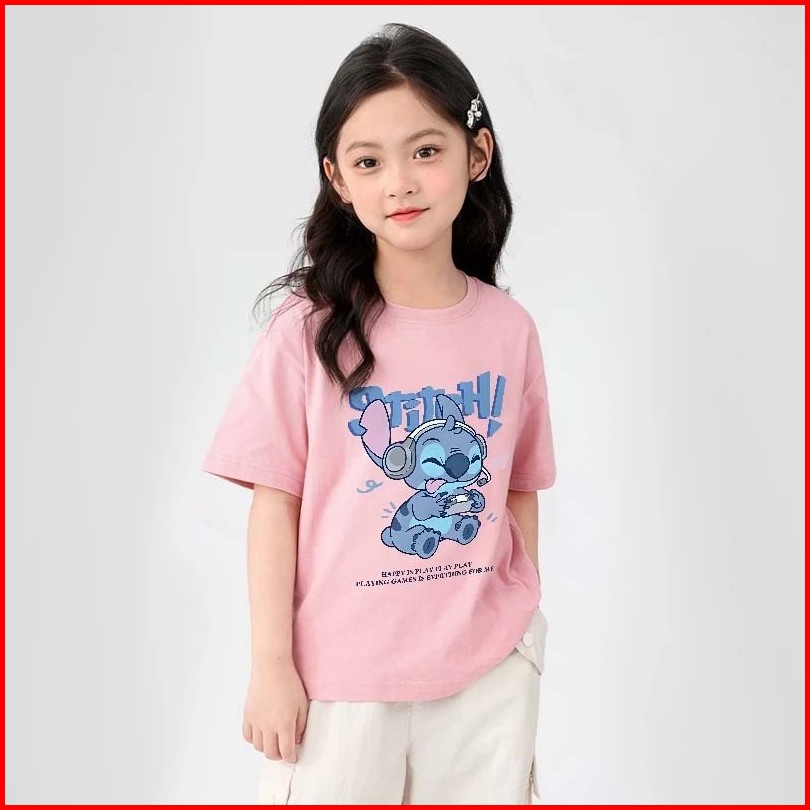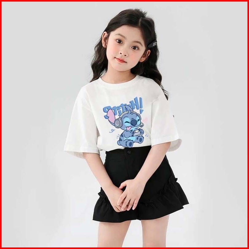 Jiojio 2-12 Tahun Putih Baju Anak Perempuan Cewek 10 Tahun Baju Kaos Anak Cetak Stitch Print T-shirt Kaos Anak Remaja Pe