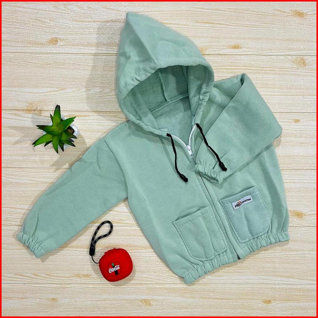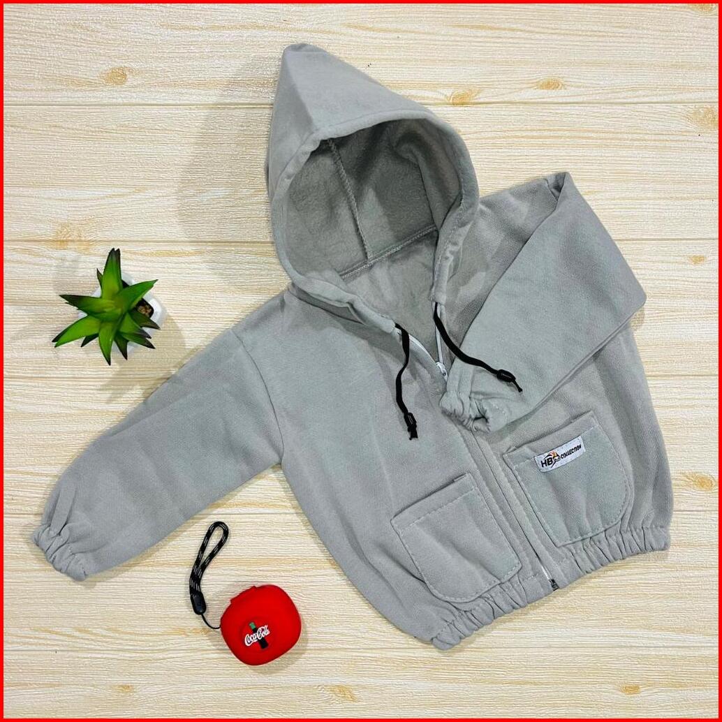 Jaket Hoodie Zipper Anak Jaket Anak Saku Depan Polos Usia 0-12 Bulan Baju Baby Gracia