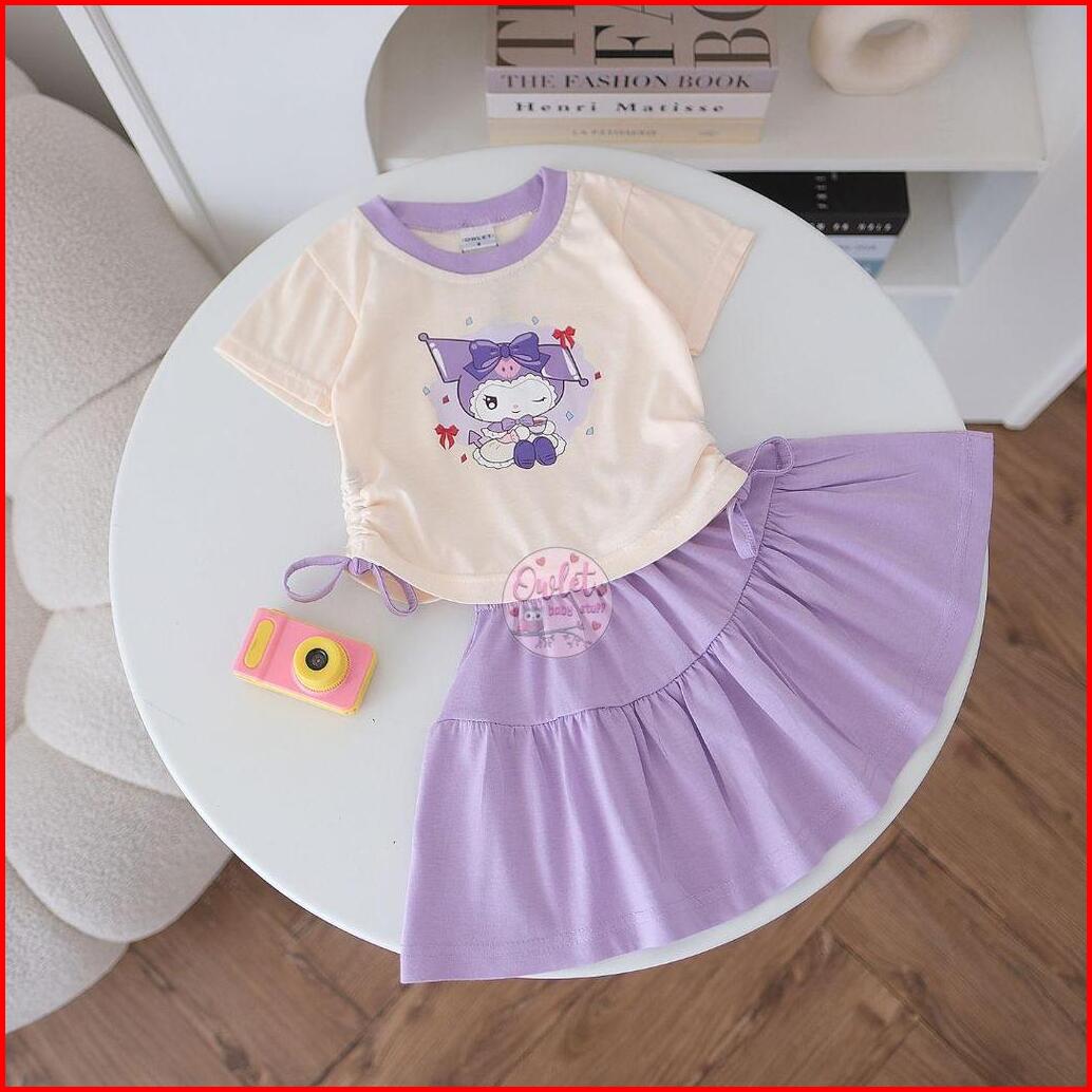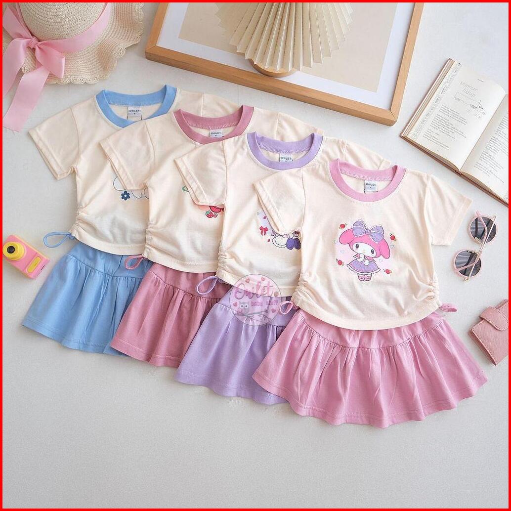 Owlet - Setelan Anak Perempuan - Setelan Rok Motif - Baju Anak Perempuan - Setelan Motif Karakter - Atasan Serut 1-7thn