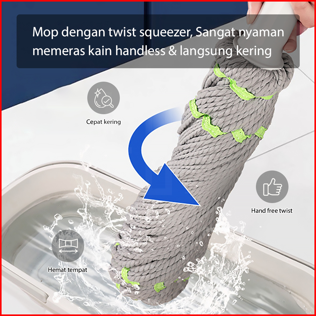 Hugo Alat Pel Lantai Peras Tarik Praktis Twist Mop - Pel Lantai Putar Praktis Otomatis Premium