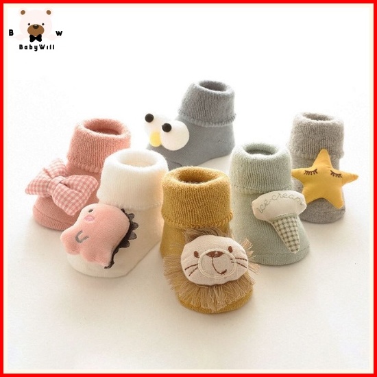 Babywill.id 0-3 Tahun Kaos Kaki Kaos Kaki Anti Slip Bayi Lembut Kaos Kaki Korea Bantal Lucu