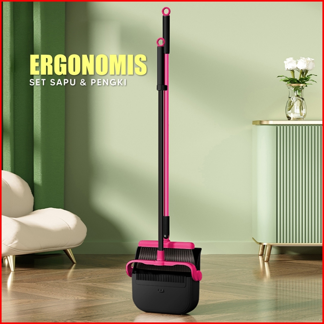 Living Mall Set Sapu Pengki Lipat D70 Broom Set Dustpan Alat Pembersih Lantai Kombinasi Sapu Pengki
