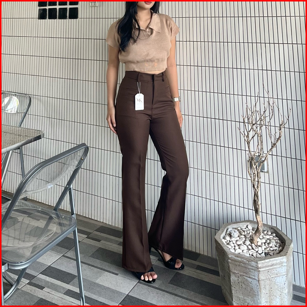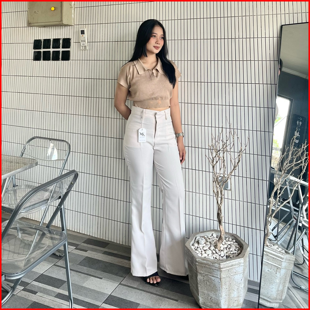 Kylie Cutbray Highwaist Pants Cutbray Flare Pants Wanita - Celana Panjang Korean Style Celana Kantor