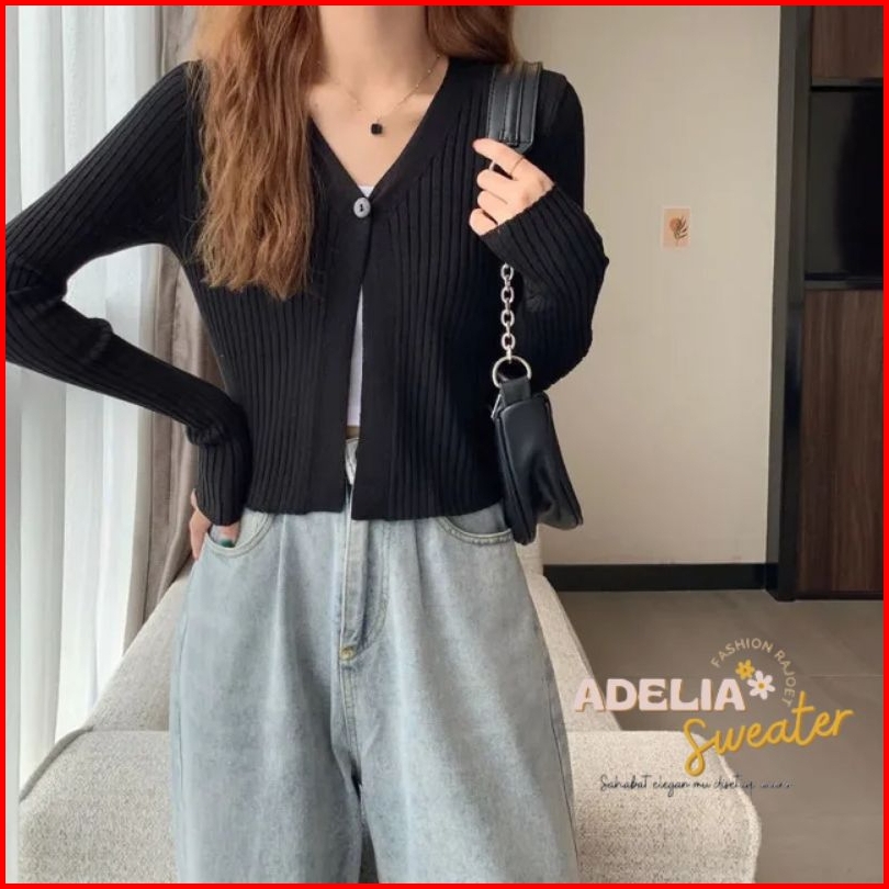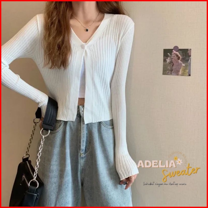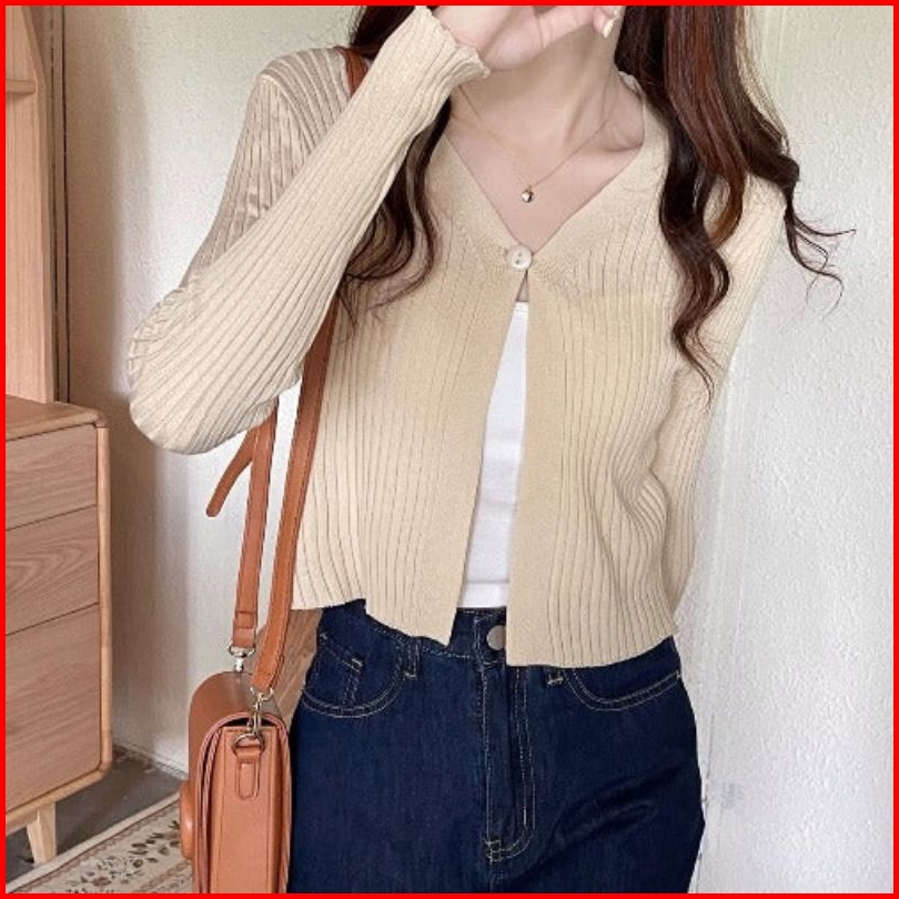 Yolla Knitted Crop Manja Cardy Cute Sweater Rajut Wanita Cardigan Lengan Panjang Atasan Korean Style