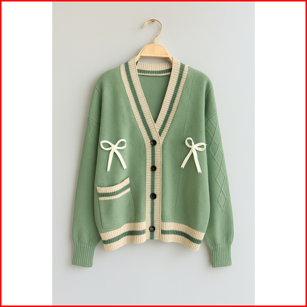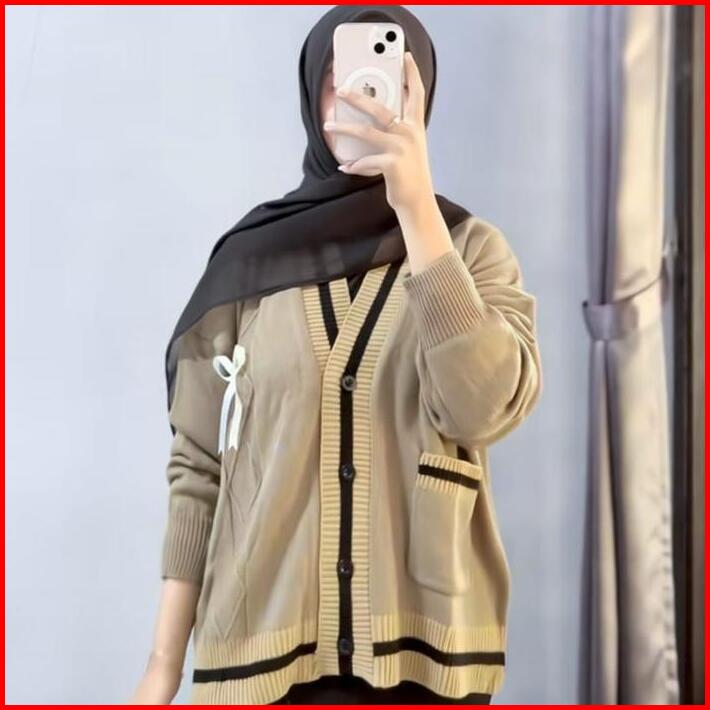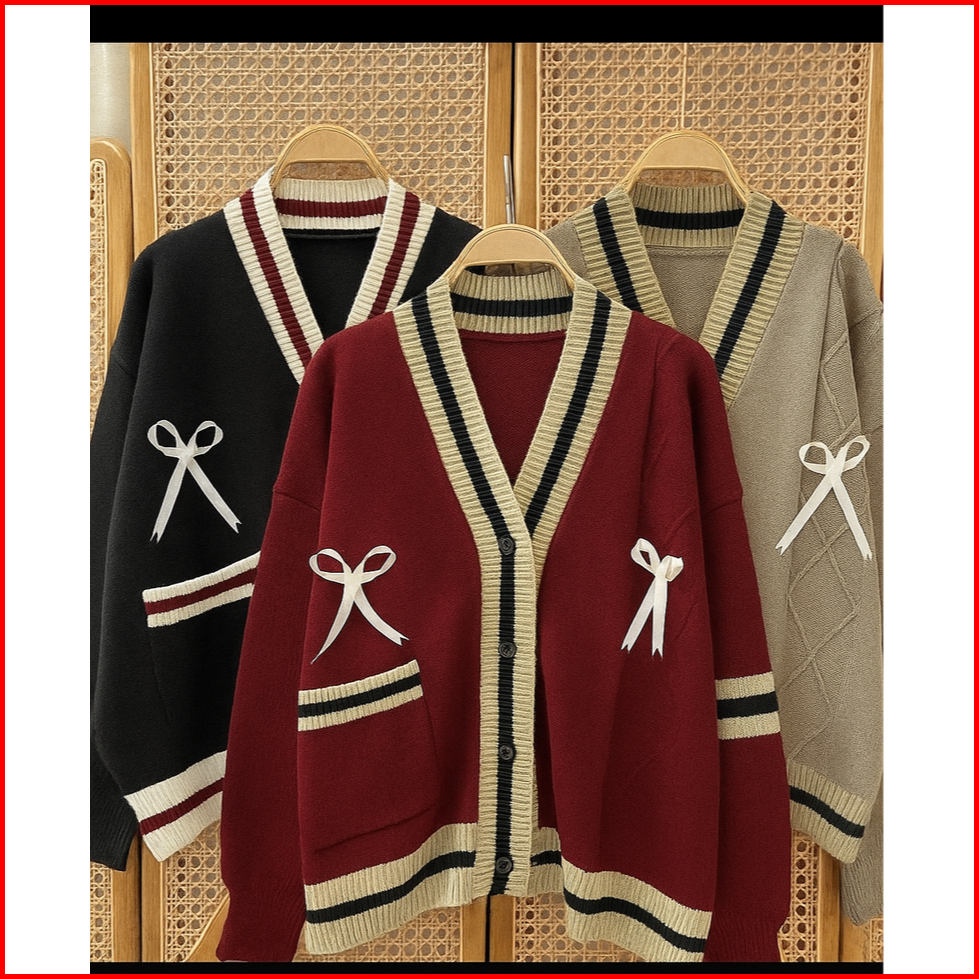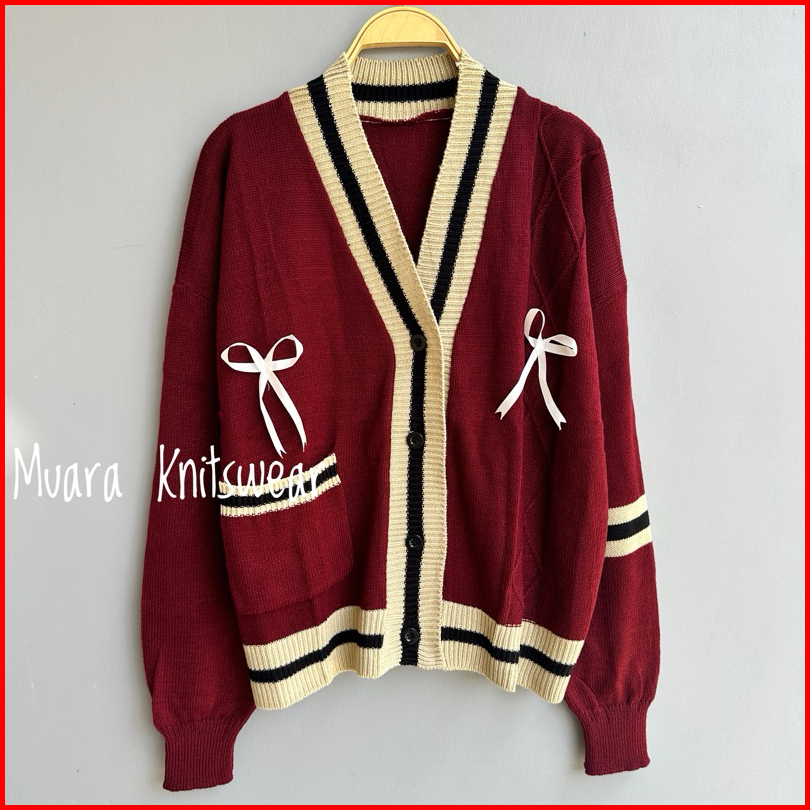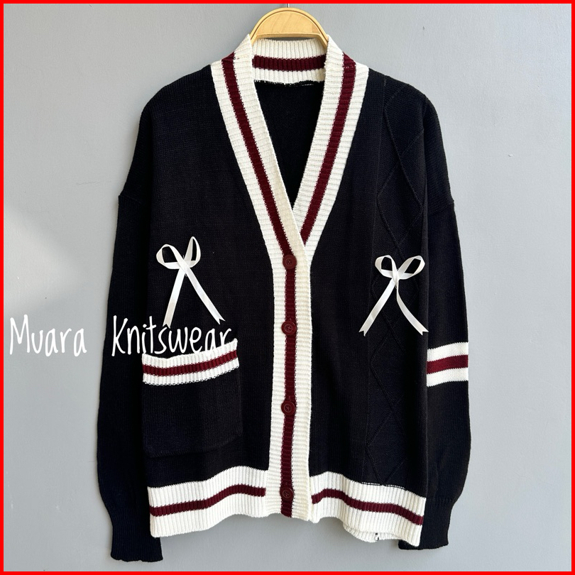 Lita Outer Knitwear Baju 2026 Lucu Cardigan Rajut Kancing Motif Pita Premium Atasan Wanita Korean Style