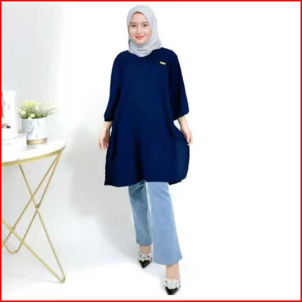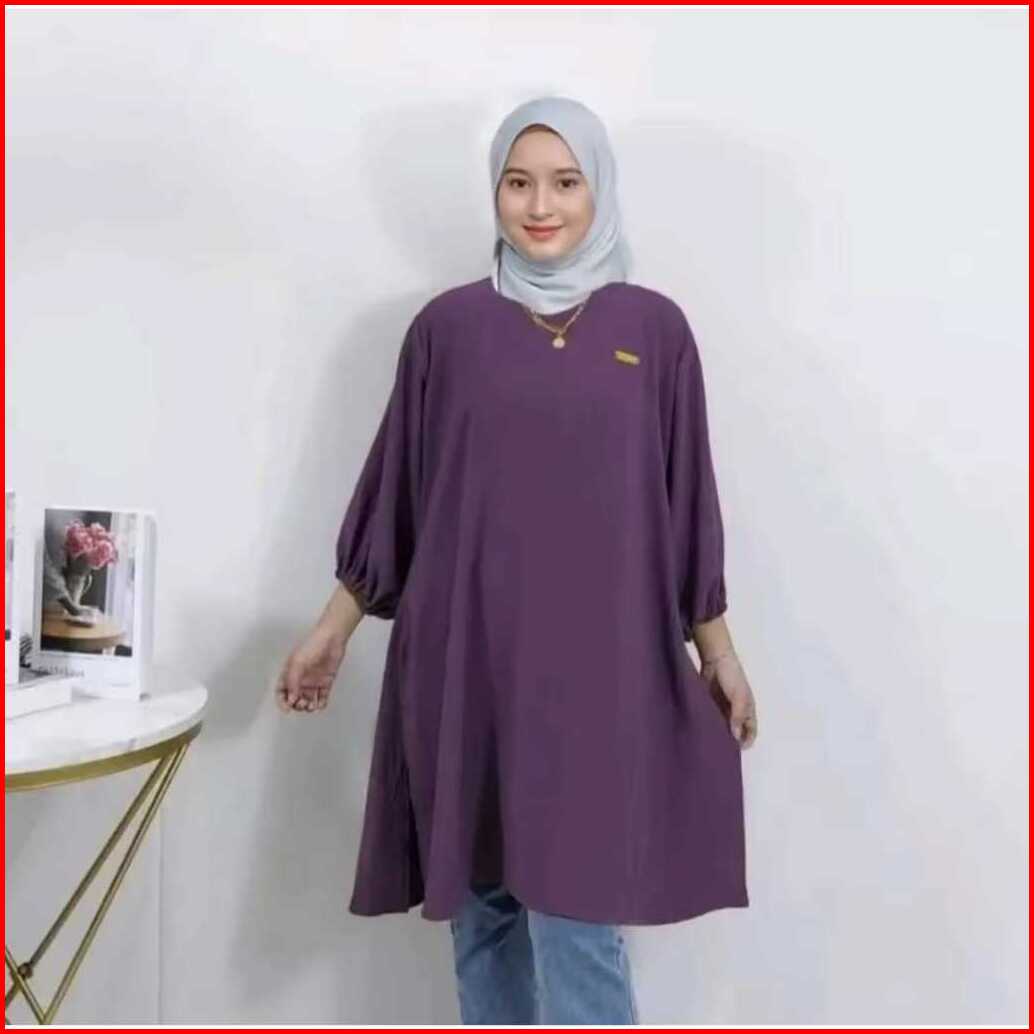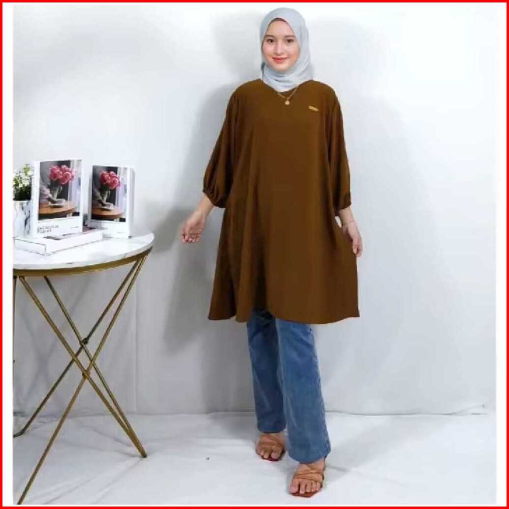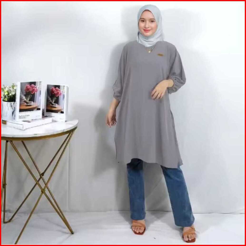 Tunik Wanita Muslim Izzara Polos Bahan Crinkle Airflow Ukuran S M L Xl Terlaris