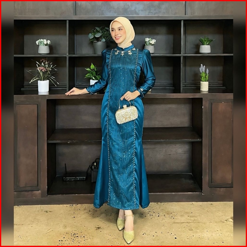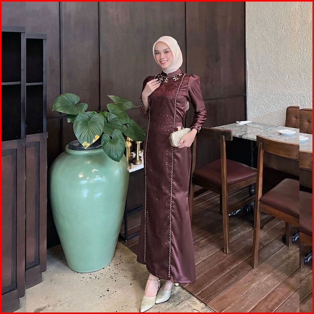 Alexa Dress Dress Kondangan Seragam Bridesmaids Pesta Mahogany Emerald Blue Burgundy Lebaran Pagar Ayu Satin