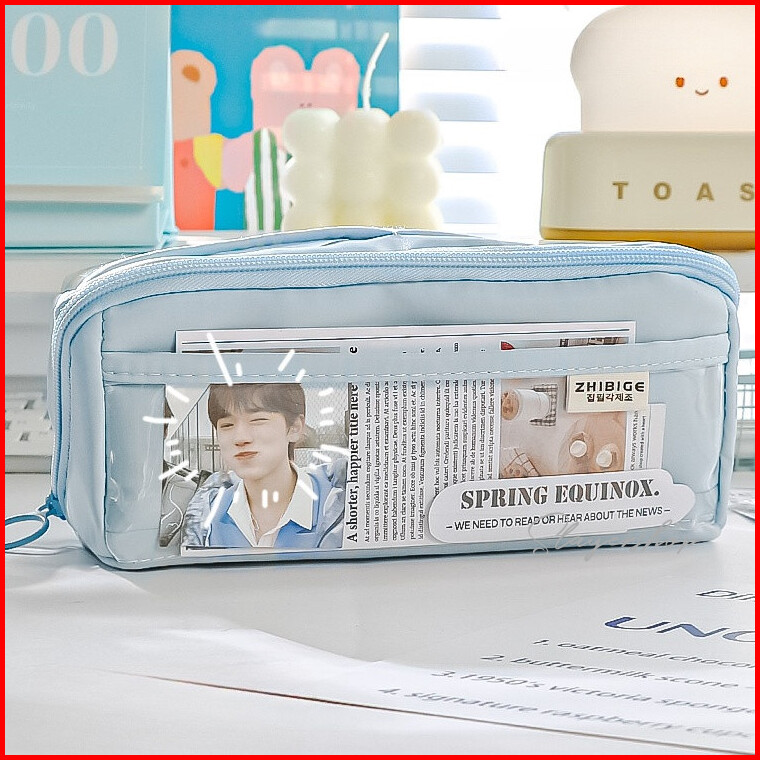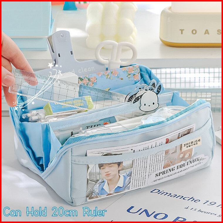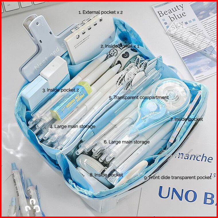 Tempat Pensil Kanvas Berlapis Kapasitas Besar Organizer Alat Tulis Serbaguna Warna Pastel