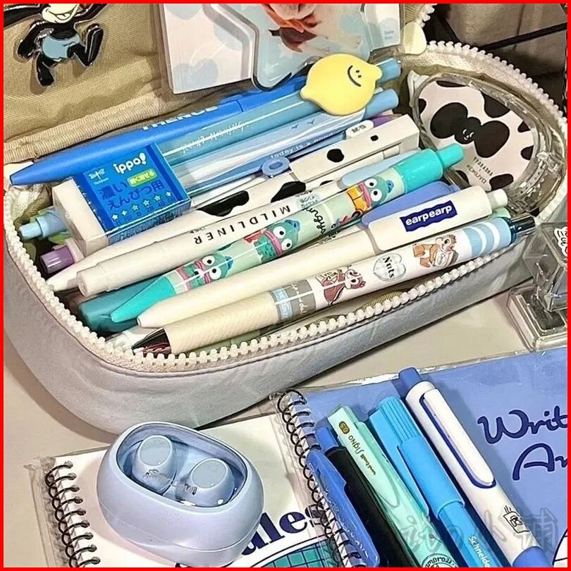 Pencil Case Tempat Pensil Retro Heart Zipper Large Capacity Stationery Cosmetic Pouch