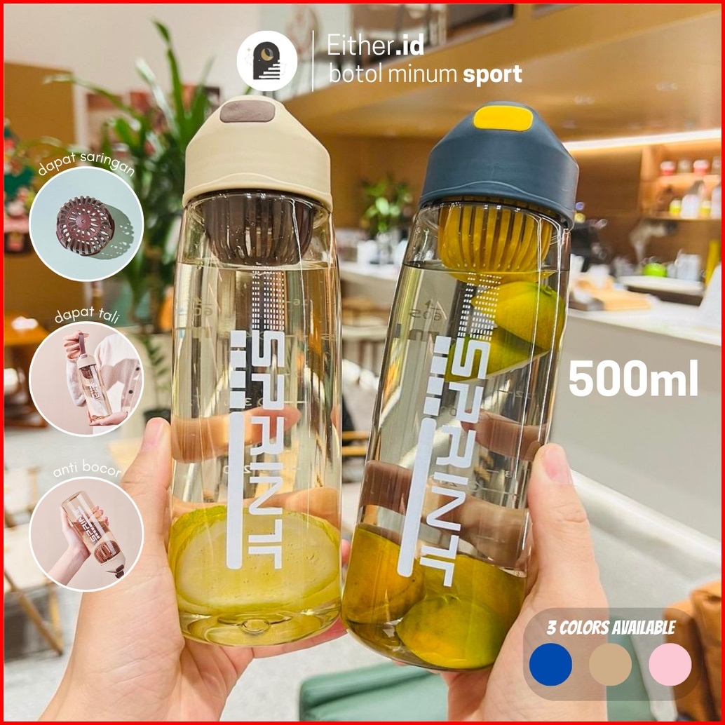 Either.id - Botol Minum Portable Olahraga Kantor Sekolah 500ml 650ml Dengan Sedotan Anti Tumpah 0.5 Liter Tumbler Anak S