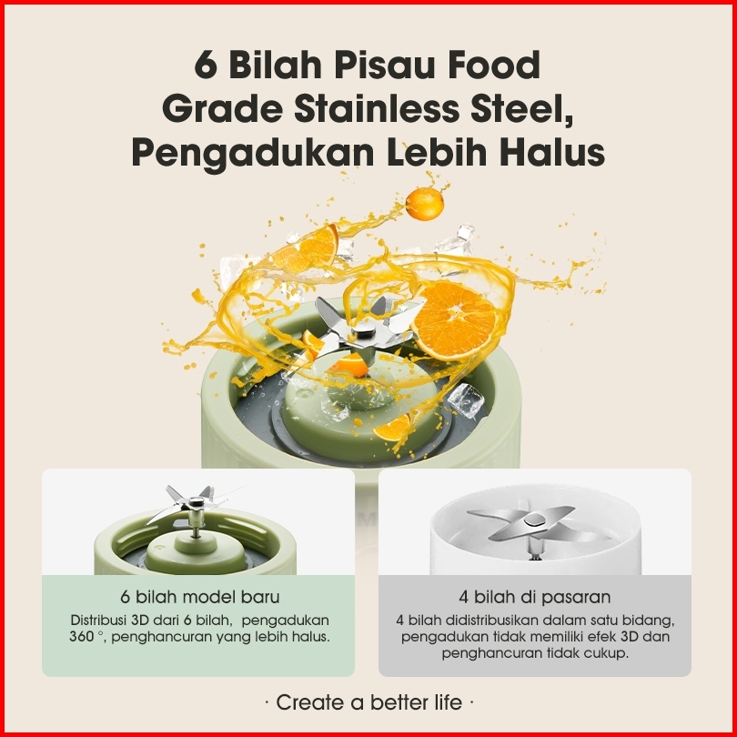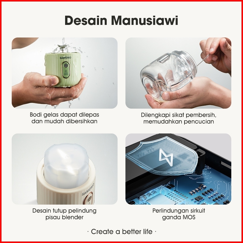 Samono Portable Juicer Gelas Kaca 350ml Juicer Portable Blander Jus Portable Belender Jus Blender Buah Blender Jus Buah