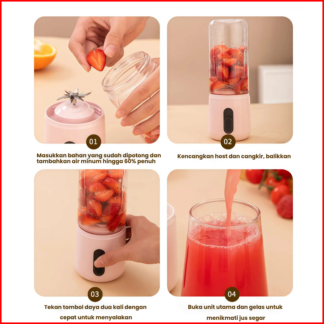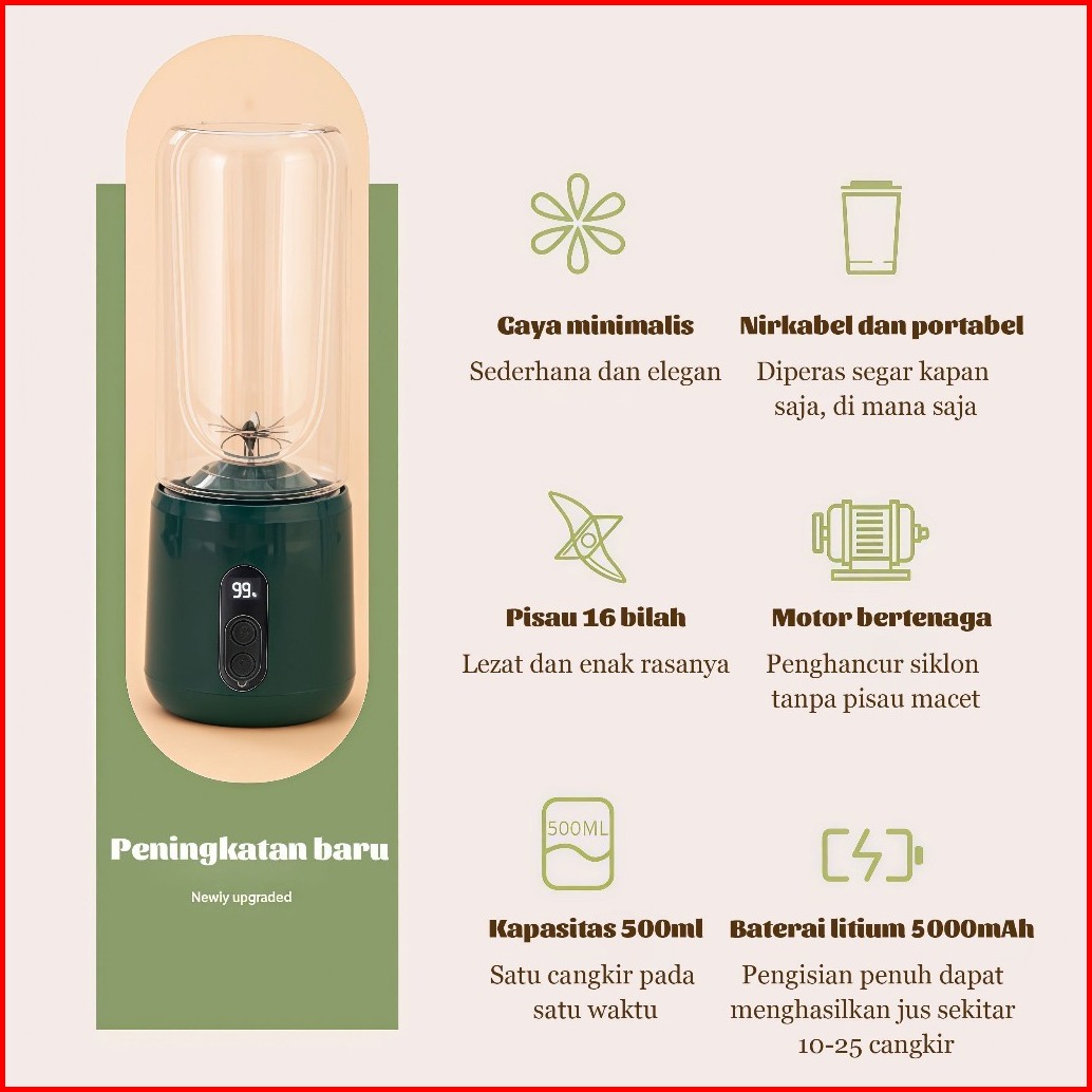 Gratis Ongkir Asli Juice Blender Portable Jus Belender Buah 16 Pisau Mini Juicer Ice Crushing 5000mah Rechargeable 500ml