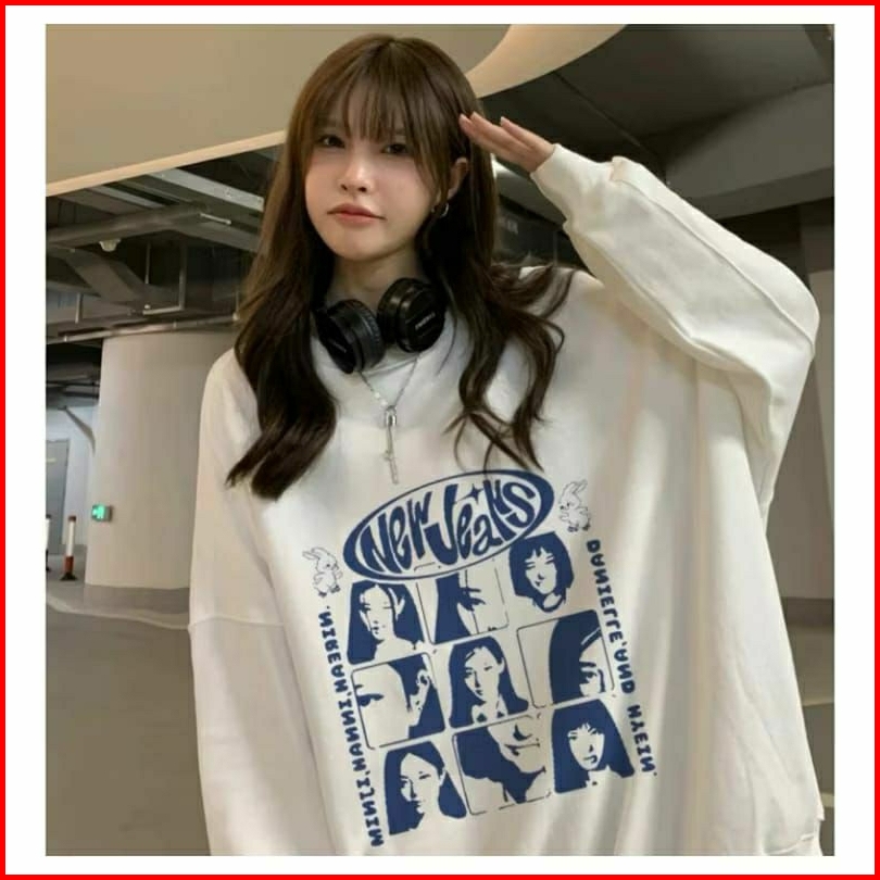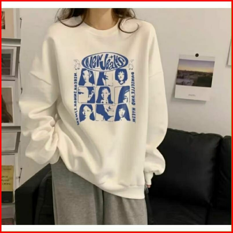 Dchles New Jeans Sweater Crewneck Lengan Panjang Oversized Korean Style