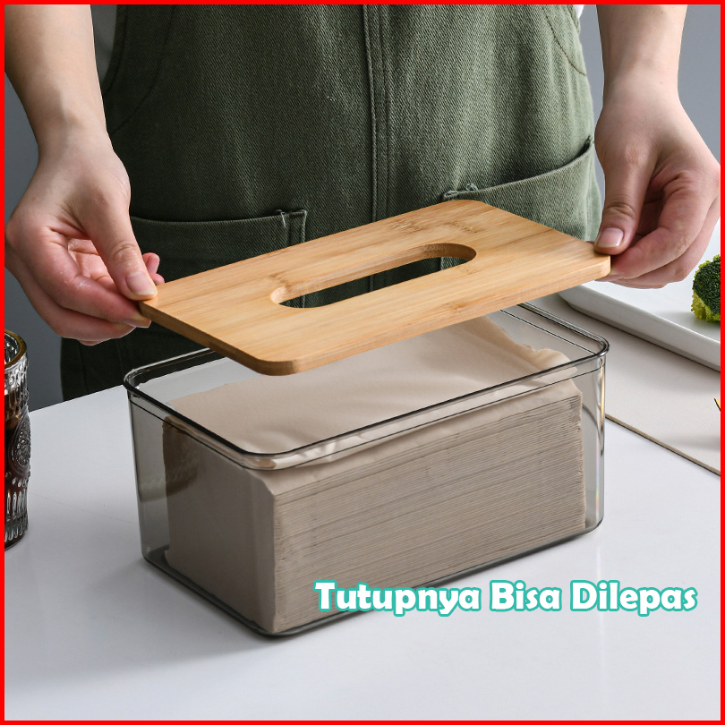Tempat Tisu Aesthetic Kotak Tisu Kayu Transparan Kotak Tissue Kamar Mandi Dapur Tempat Tisue Organizer Modern