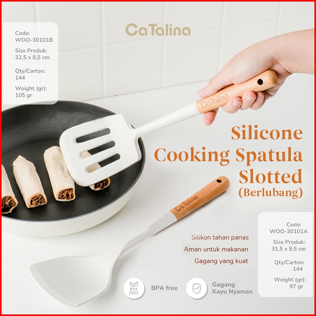 Catalina Spatula Series Silikon Tahan Panas Handle Kayu Non-stick