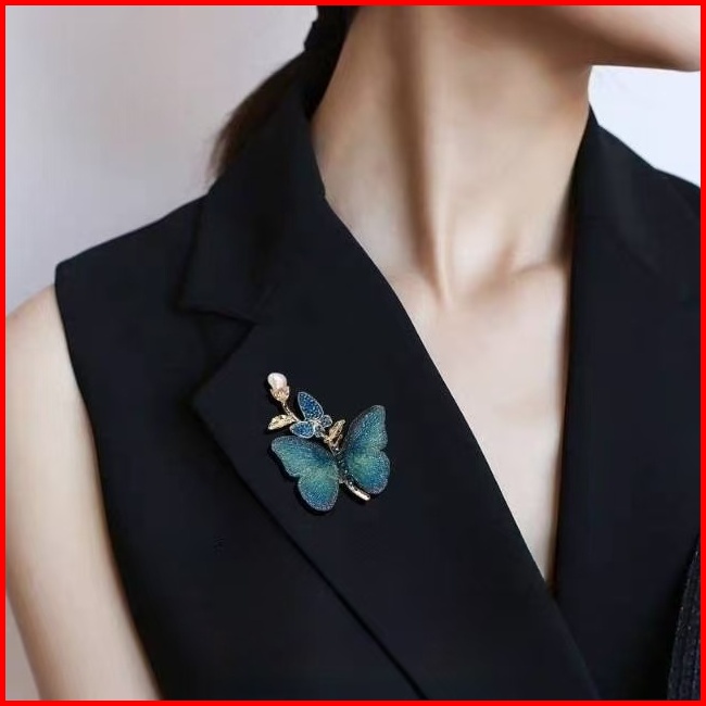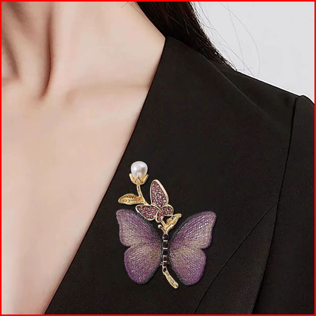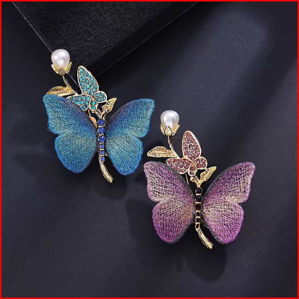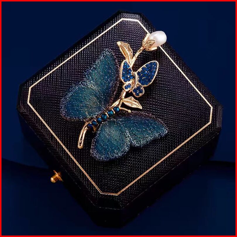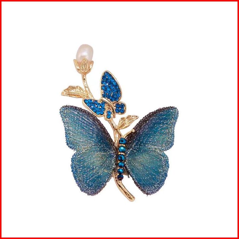 Elfindo-172 Bros Premium Kupu Embroidery Brooch Imitation Pearl Crystal Fashion Wanita Kekinian