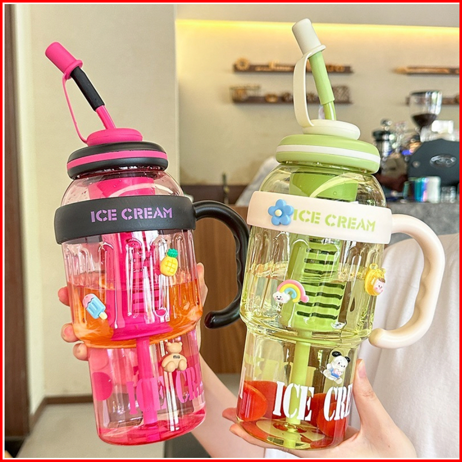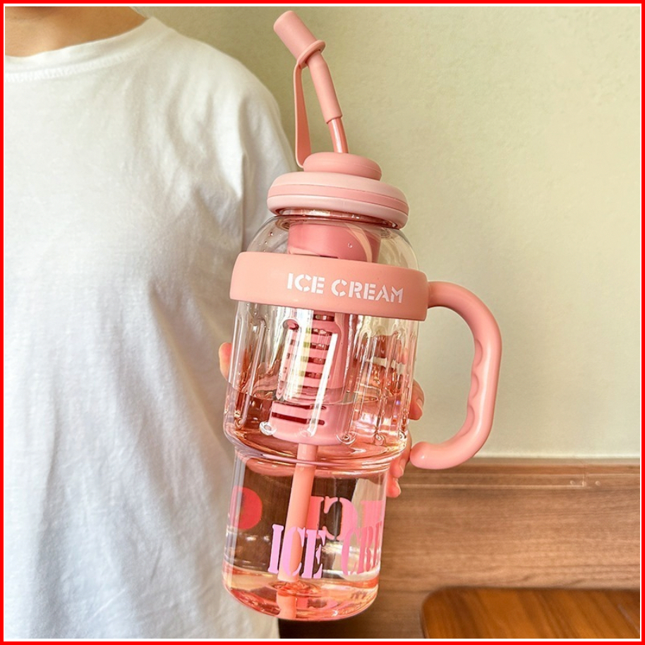 Botol Minum Jumbo Ice Cream Botol Gym Ukuran 1400ml Sedotan Gagang Botol Hx 3089 Hx-3089