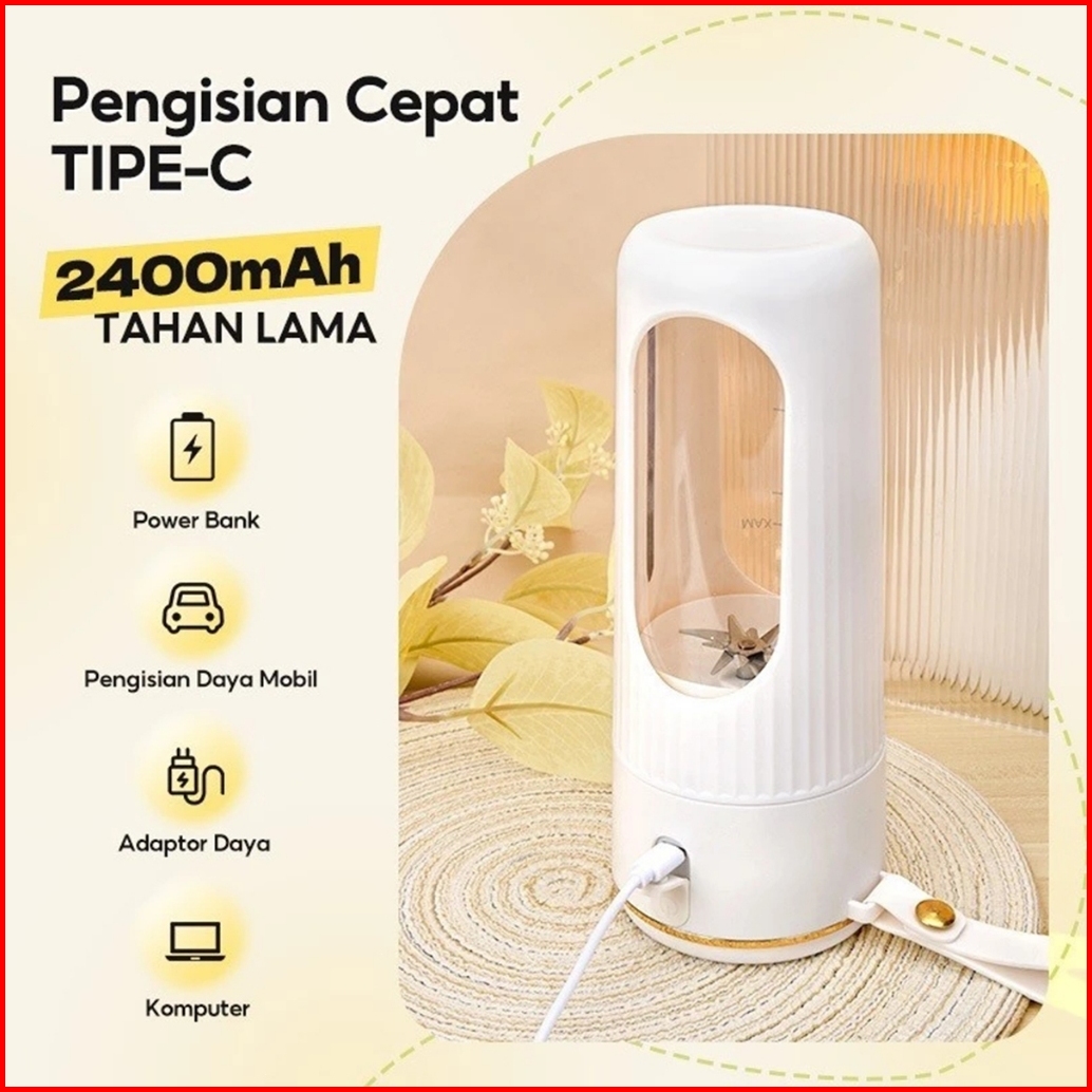 340ml Juicer Portable 14 Mata Pisau 2400mah Food Grade 2 Warna Portable Juicer Blender Cordless Stainless Stell 304