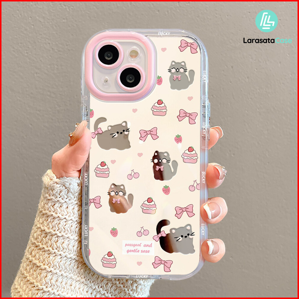 Case Kucing Lucu Fancy Mirror Bumper Shockproof Casing Untuk Iphone15 Pro Max Plus 11 12 13pro 6 7 8 6 7 8 Xs Max 14 Plu