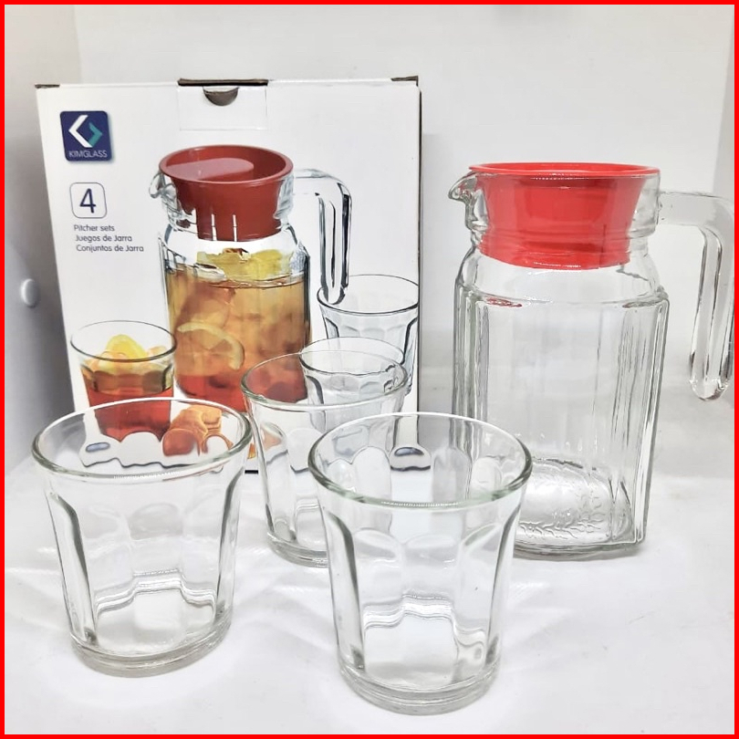 Pitcher Set 4 In 1 Sudah Termasuk Gelas Teko Kaca Set Set Peralatan Saji Minuman Teh Kopi