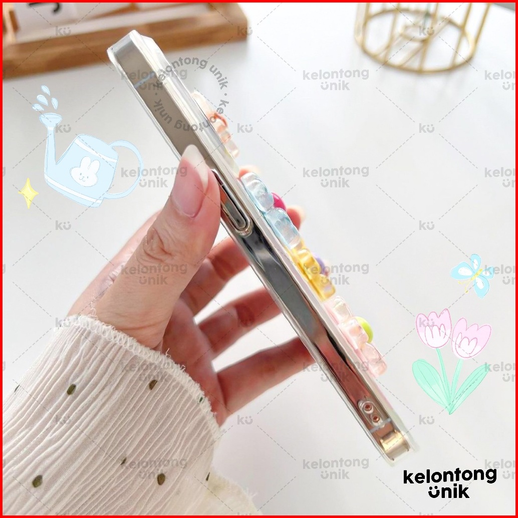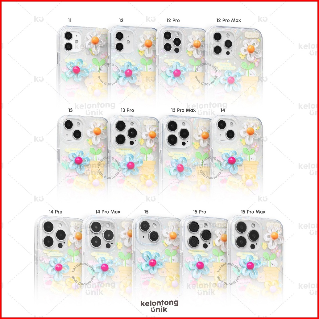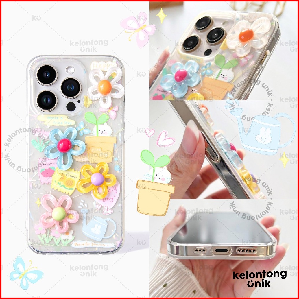 Kelontong Unik Poppy 3d Cat Flower Holographic Case - Hardcase Casing Hp For Iphone 11 12 13 14 15 16 17 Pro Promax Cihy