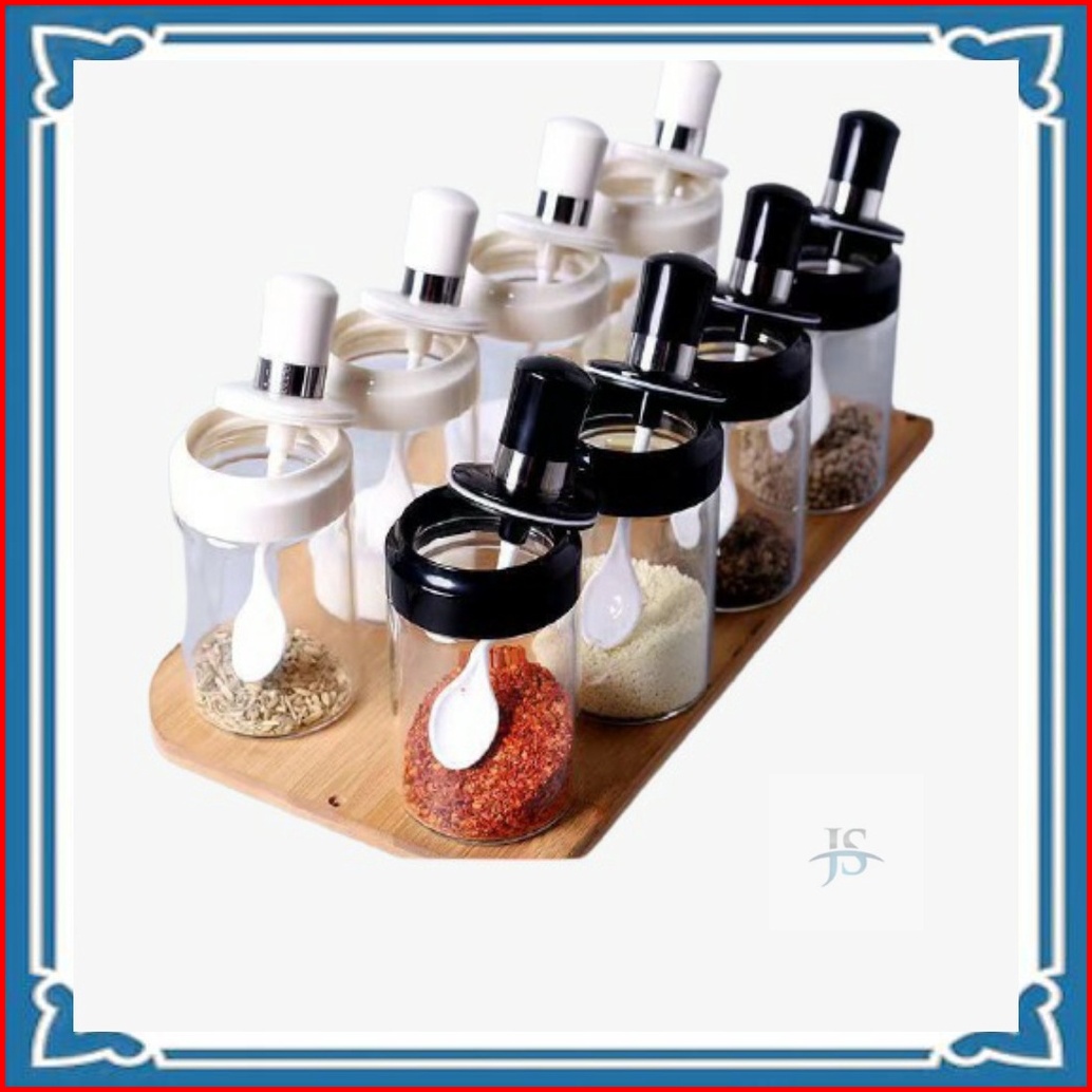 Js Paket 5pcs Tempat Bumbu Kaca Sendok Dapur Garam Gula Kopi Serbaguna Botol Bumbu Tutup Kedap Toples Wadah Bumbu Minyak