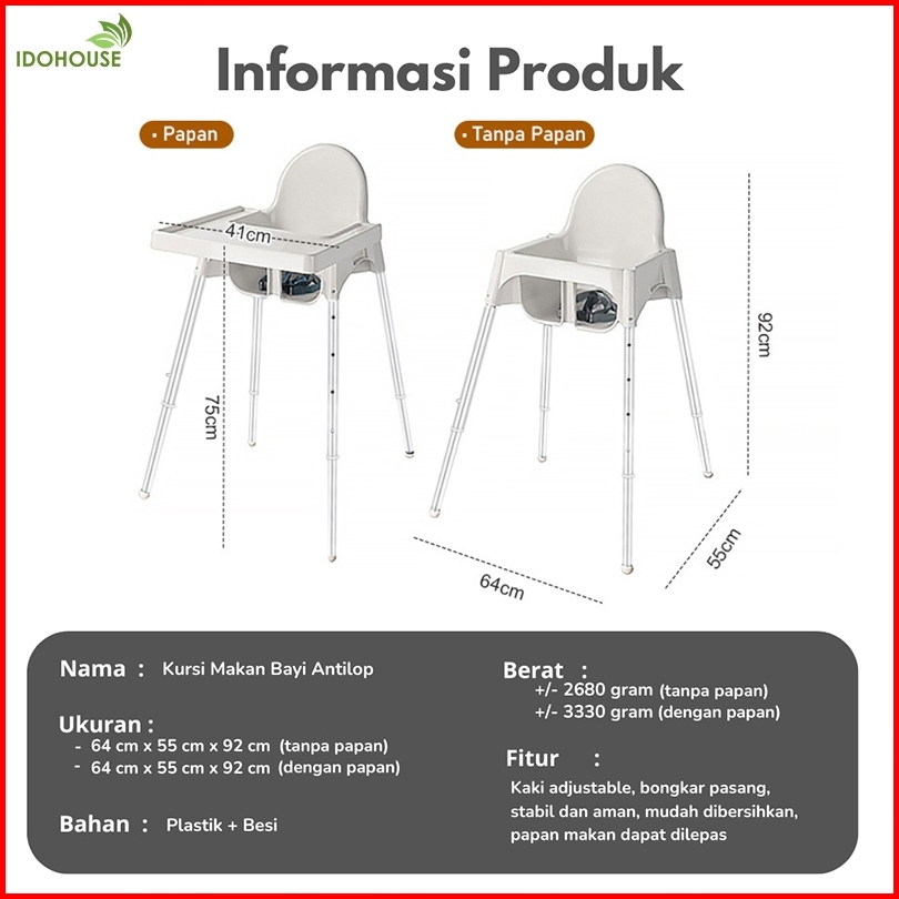 Idohouse Kursi Makan Bayi Anak Baby Chair High Tinggi Antilop Restoran Cafe Tempat Dinning -a03a 03b
