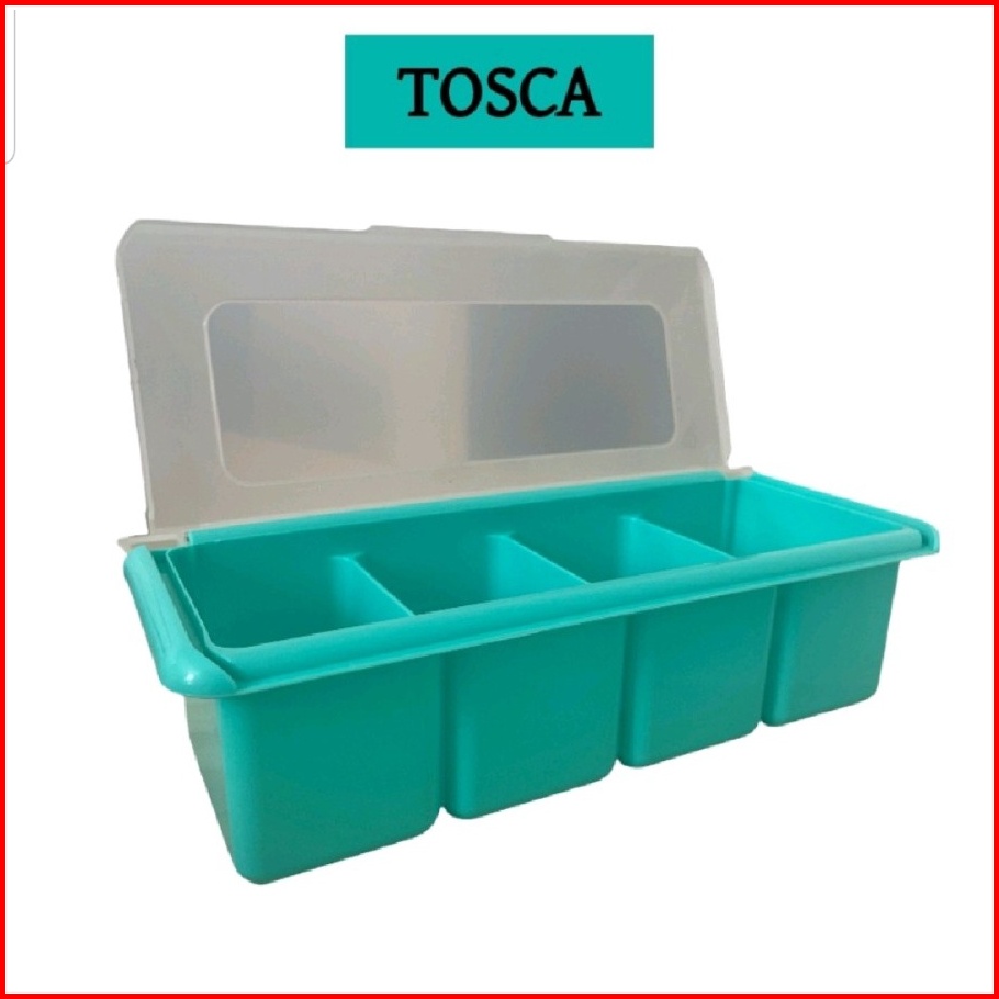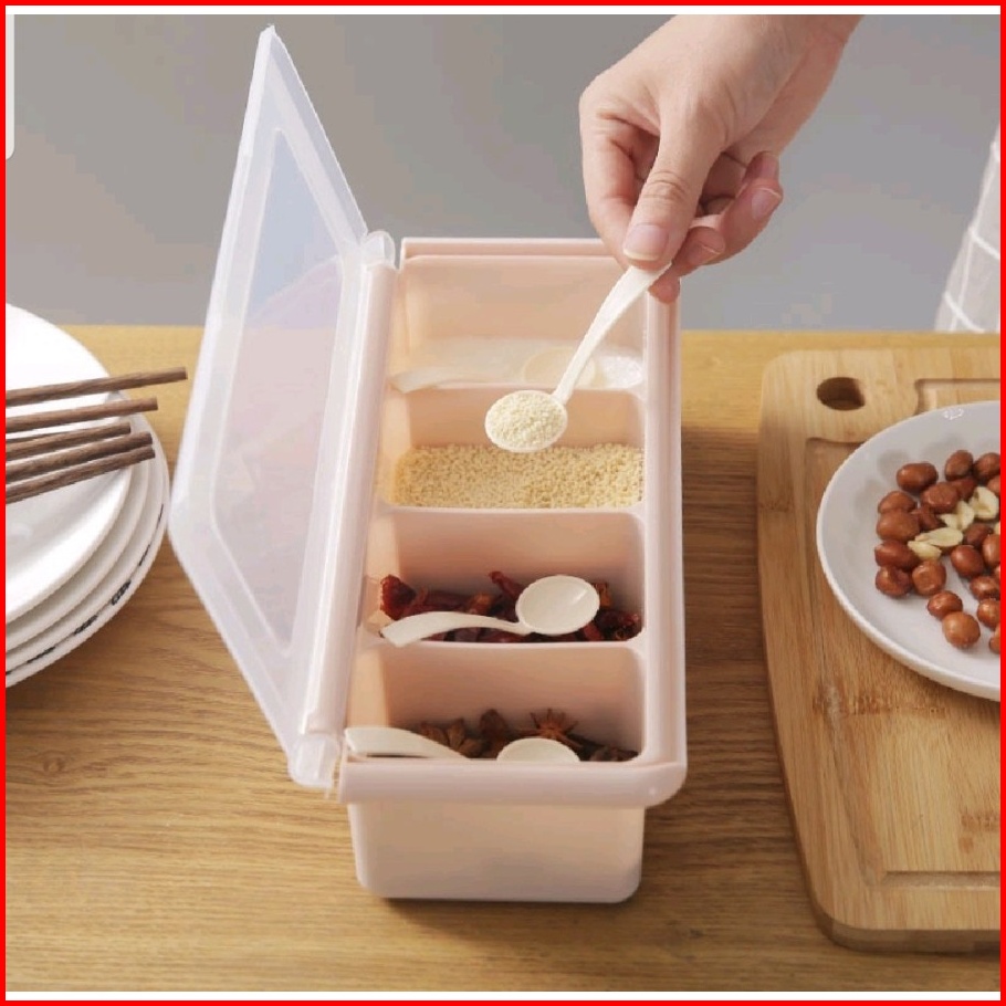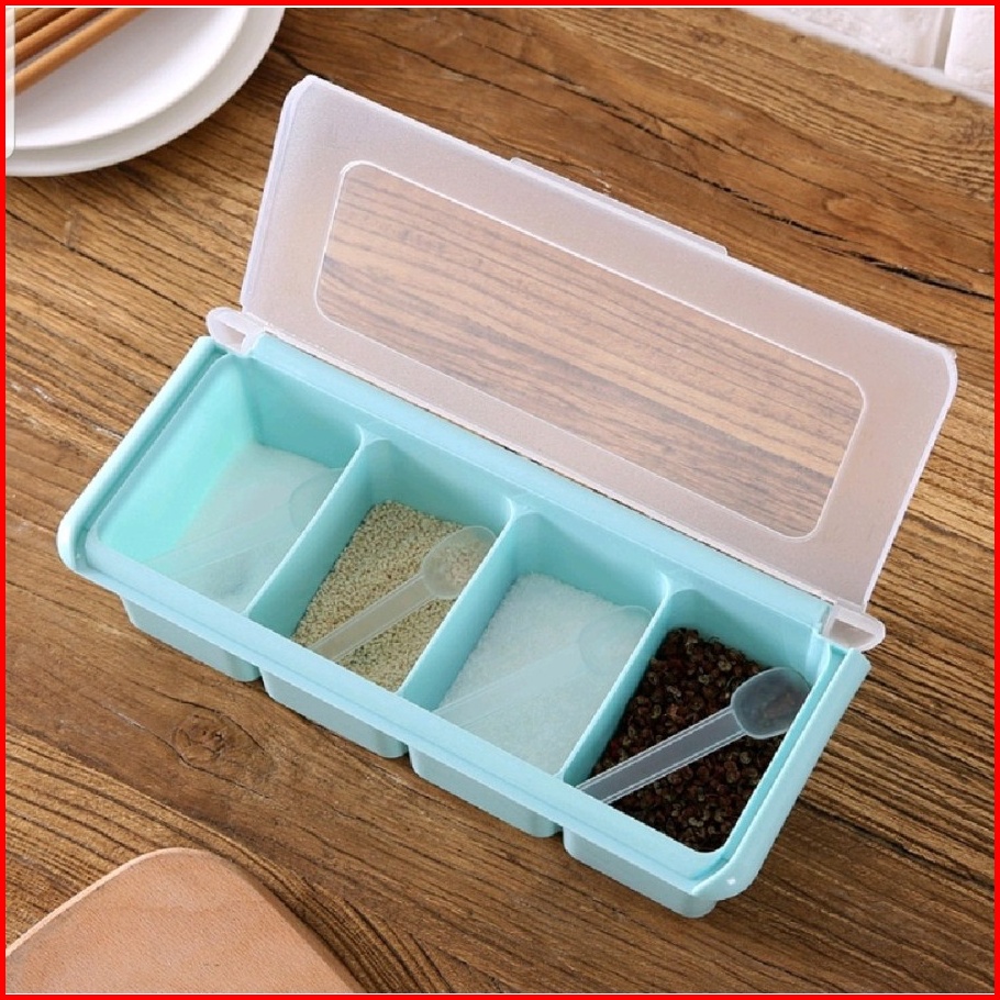 Kotak Bumbu 4 In 1 Tempat Bumbu Dapur 4 Sekat Free Sendok Model Persegi Tosca - Bdc