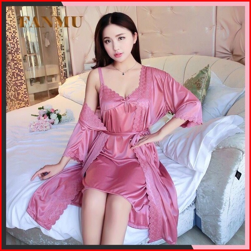 Baju Tidur Kimono Lingerie Sexi 2in1 Jumbo Tricot Satin Import