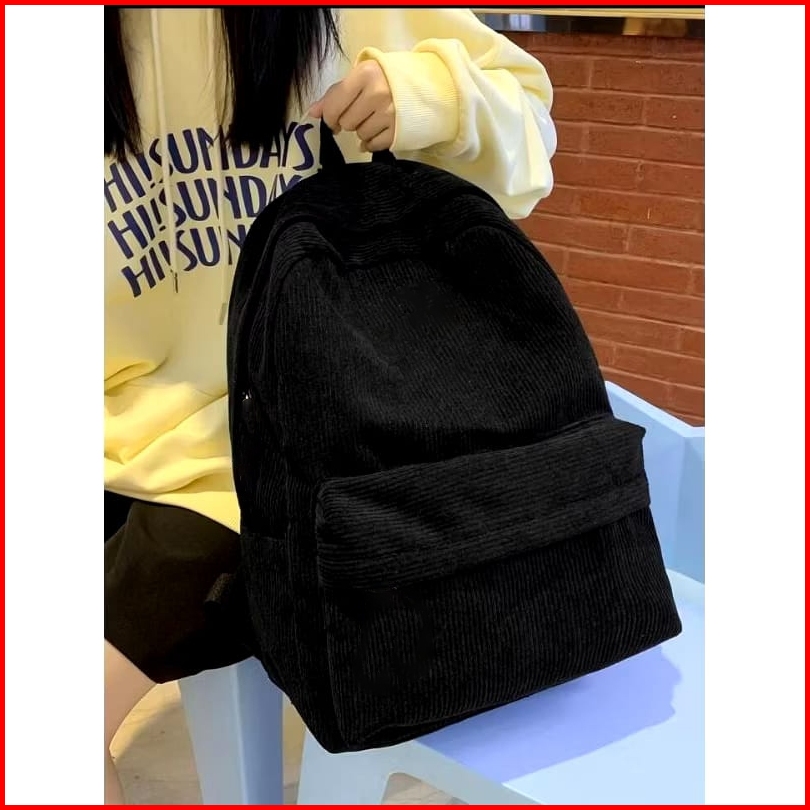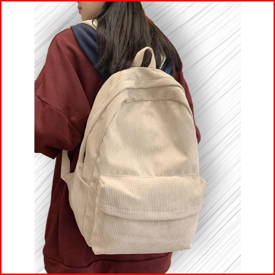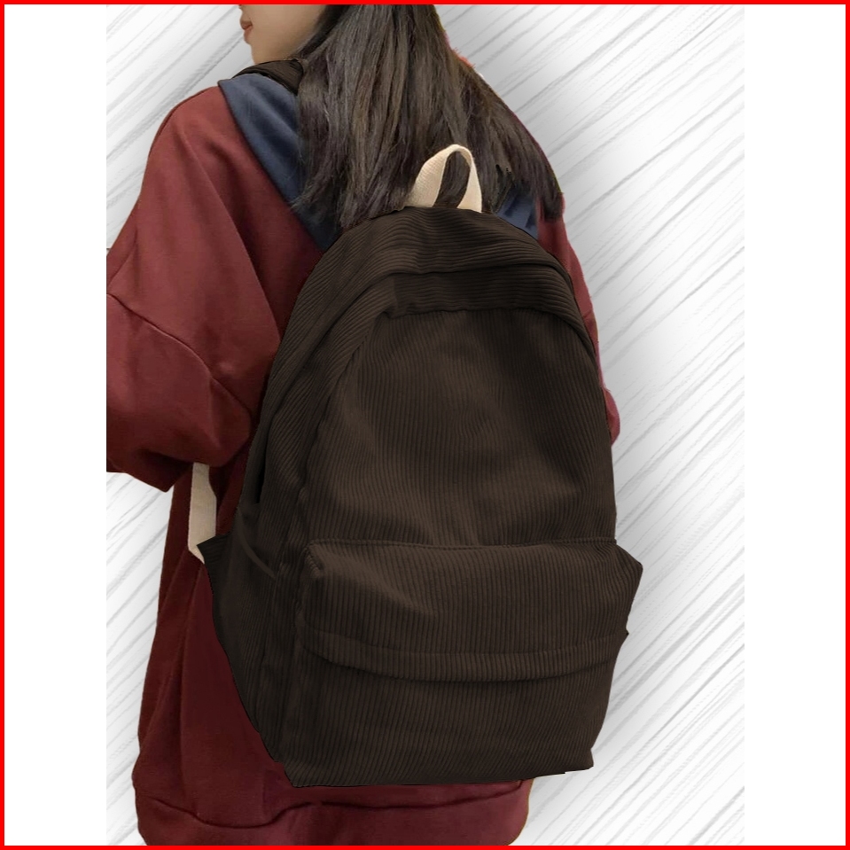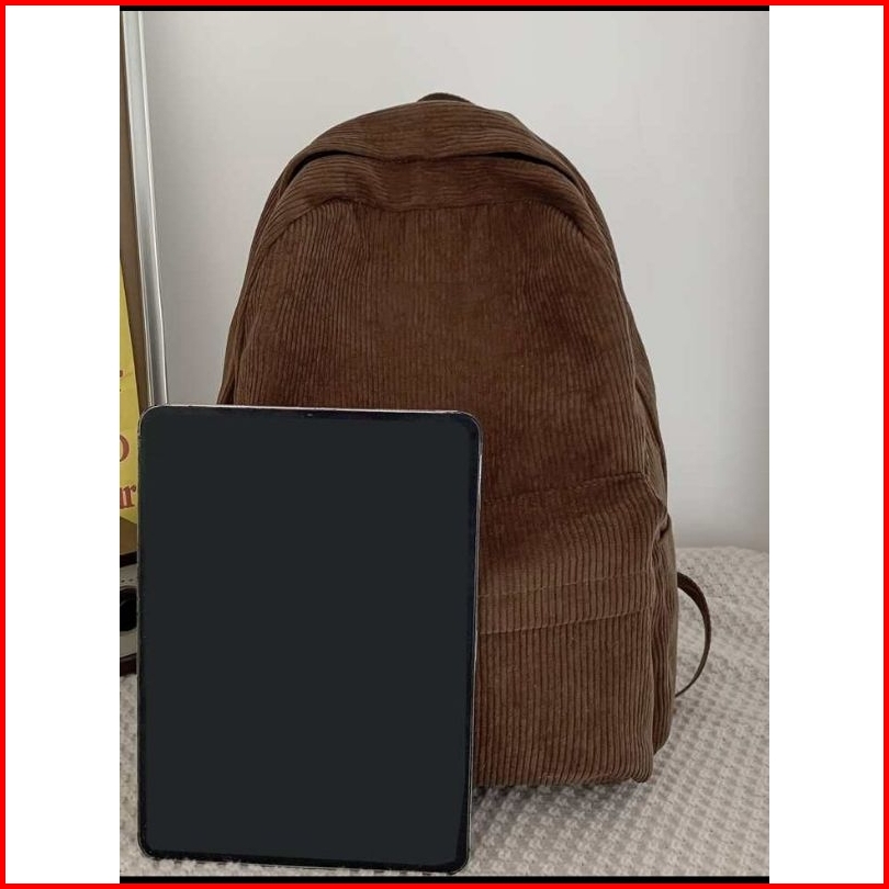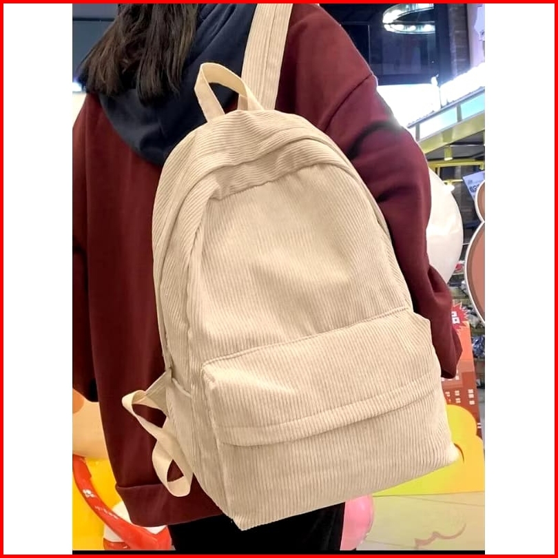 Ans-tas Ransel Pria Wanita Corduroy Fungsional Tas Ransel Free Pin