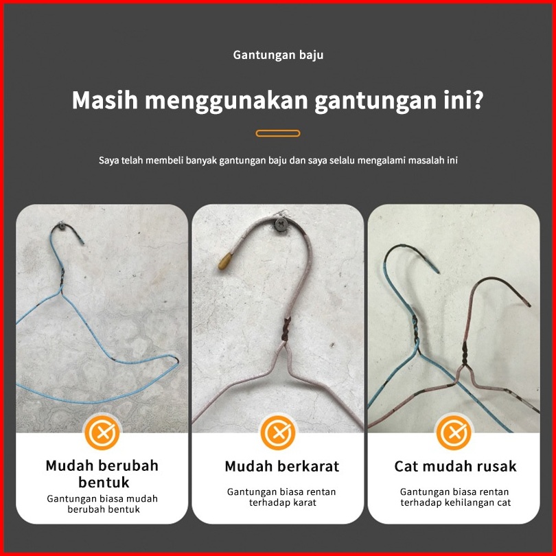 Hanger Baju Stainless Tebal 3mm Gantungan Baju 1 Paket 10 Buah 32 42 45cm