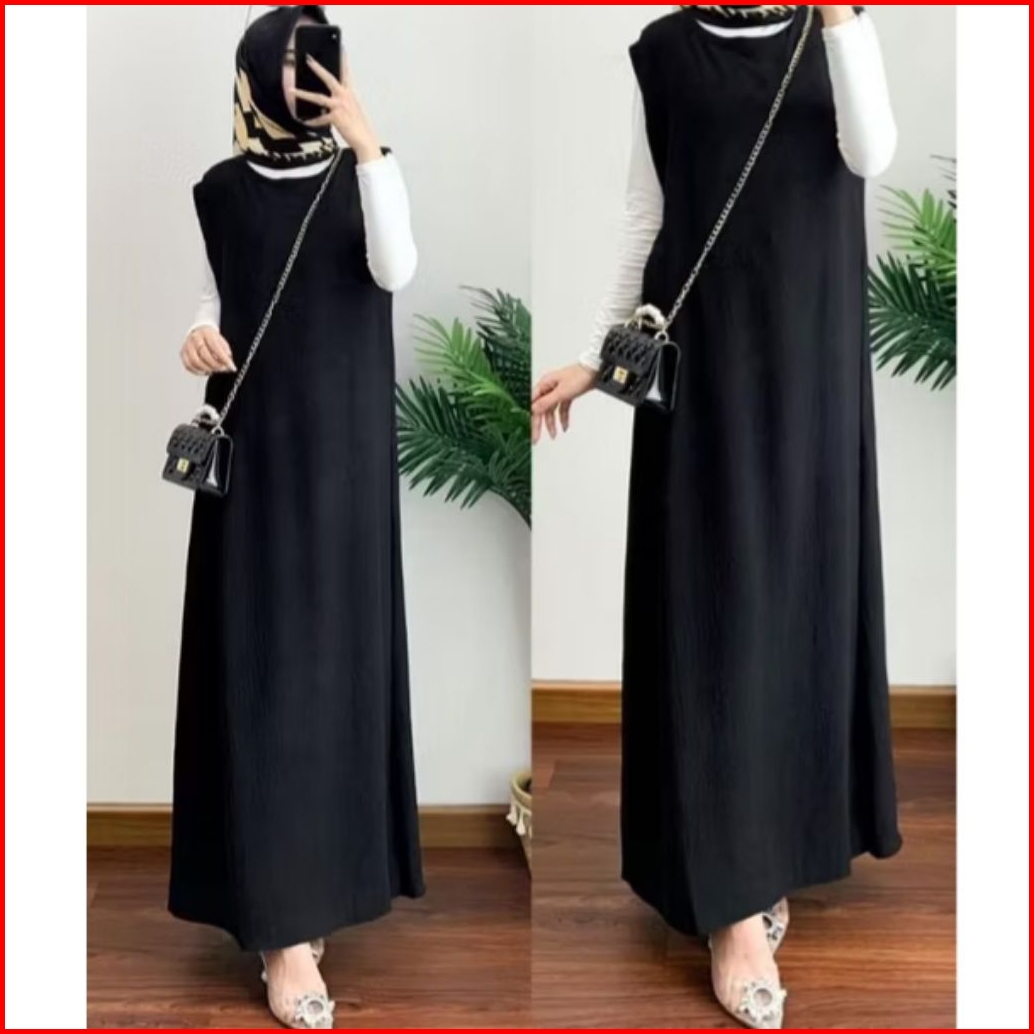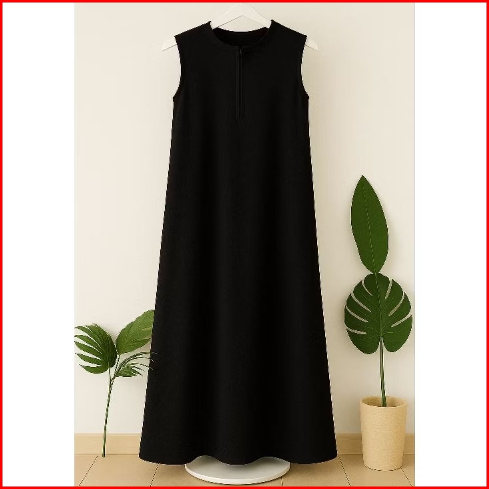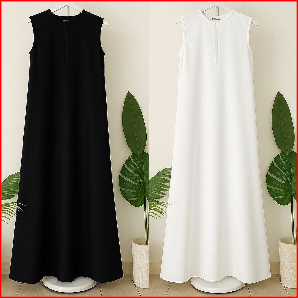 Inner Dress Wanita Polos Tanpa Lengan Muslimah Kekinian Inner Sleting Depan Elegan Bahan Premium