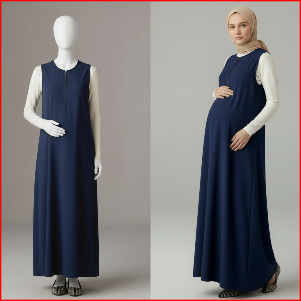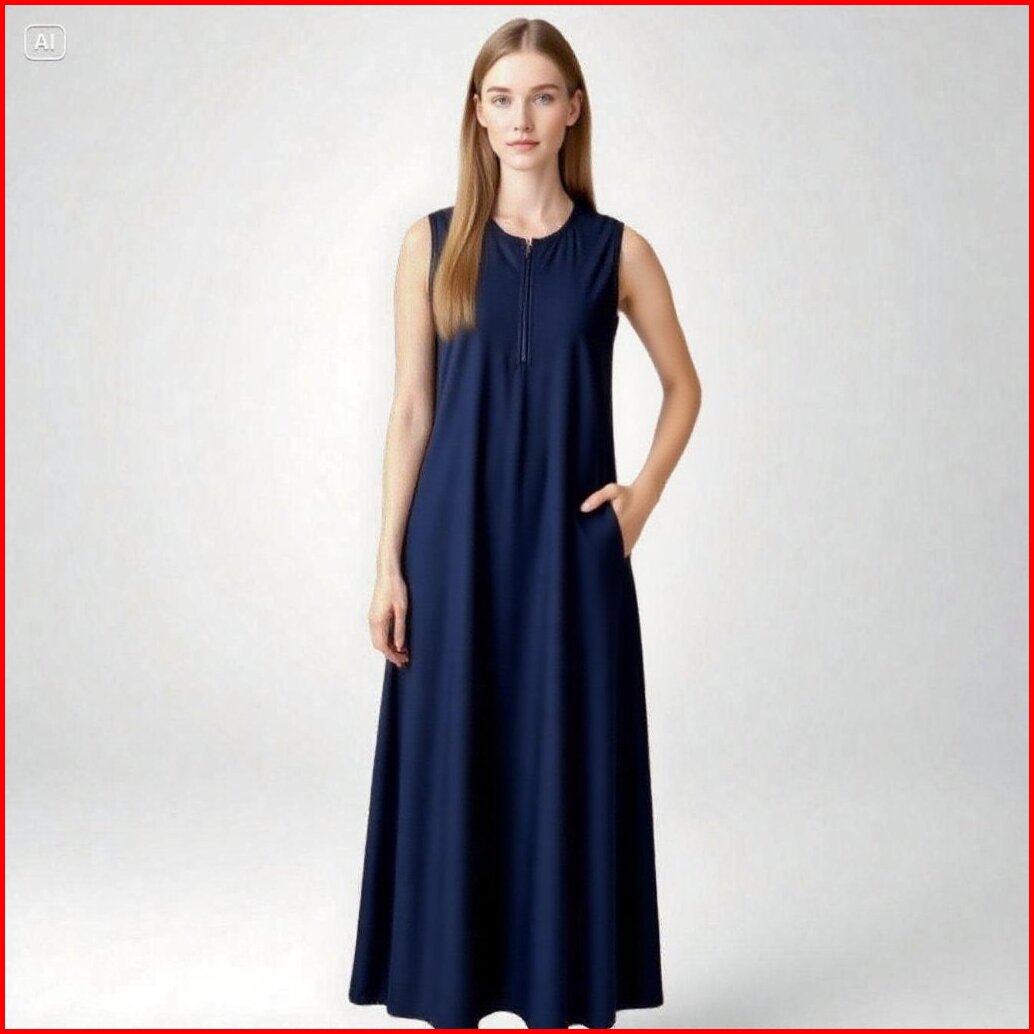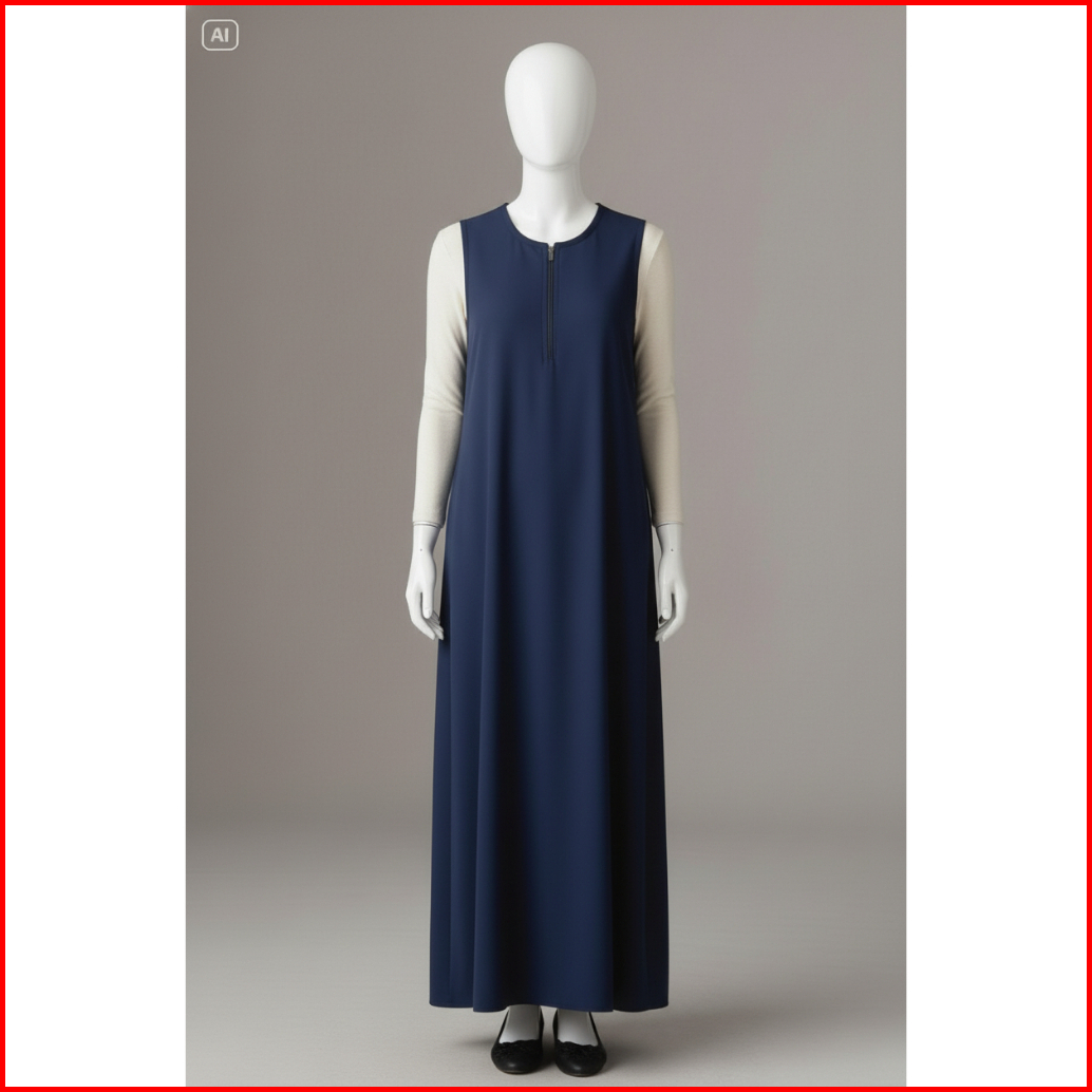 Inner Dress Toyobo Wanita Polos Tanpa Lengan Sleting Depan Muslimah Kutungan Katun Toyobo