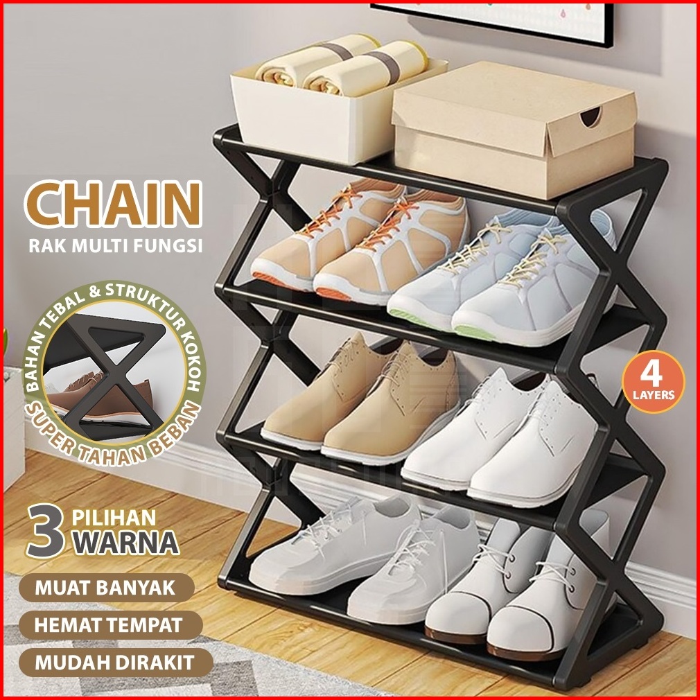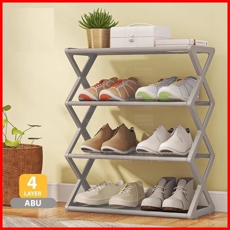 Mesh Rak Sepatu Portable 4 Susun Tempat Sepatu Sandal Serbaguna Minimalis Stainless Steel Kokoh
