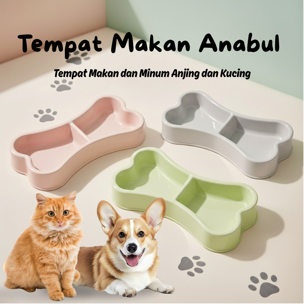 Tempat Makan Anabul Minimalis - Tempat Makan Peliharaan Motif Tulang